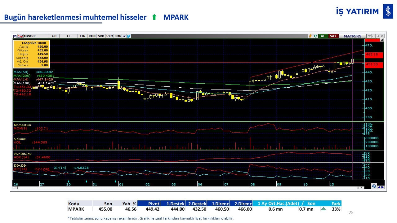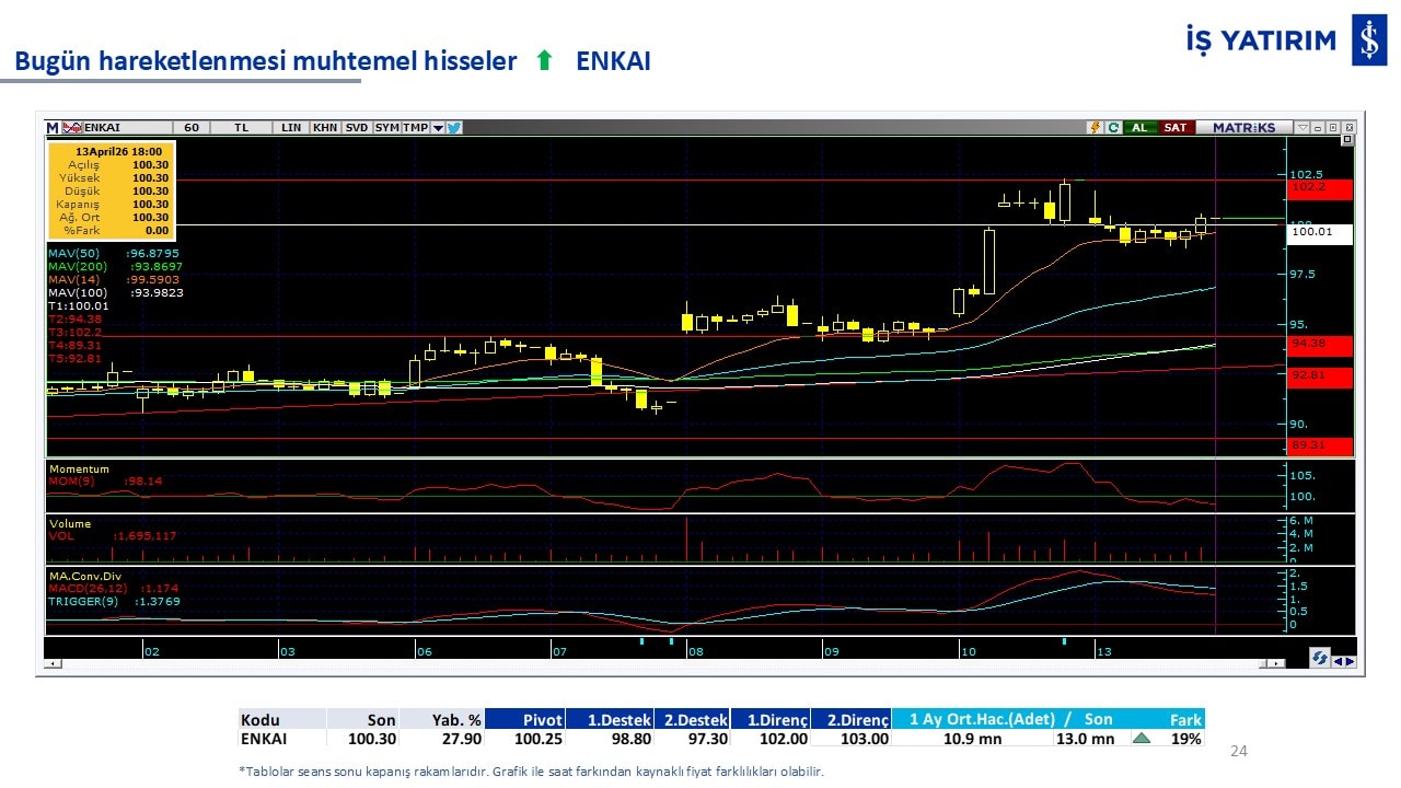 Bugün hareketlenmesi muhtemel hisseler: ENKAI-MPARK