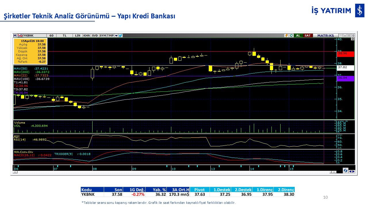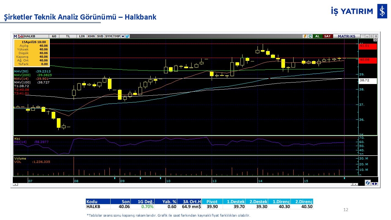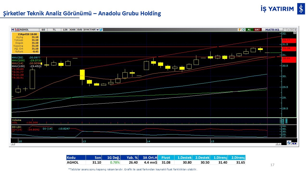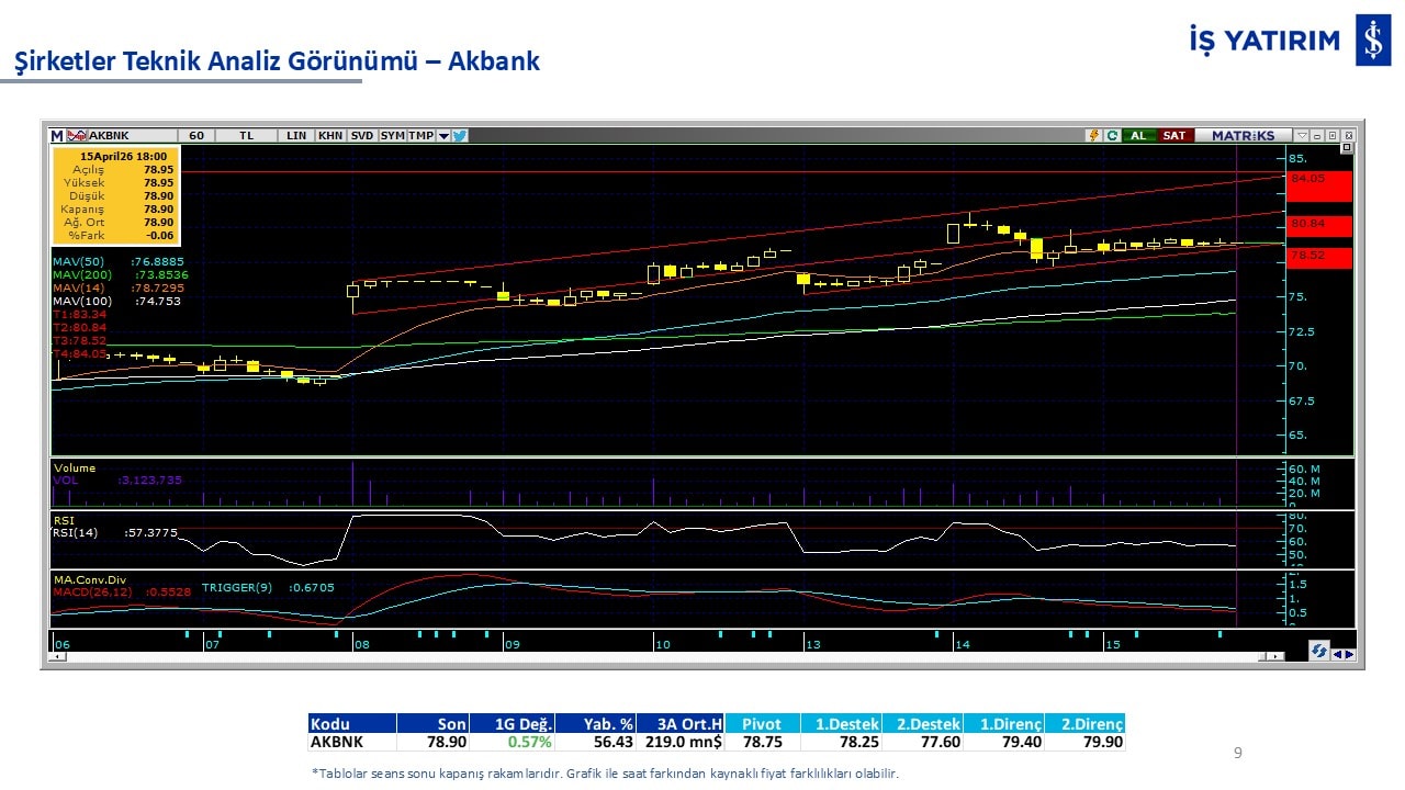 Teknik analiz görünümü olan şirketler: GARAN, THYAO, ISCTR, AKBNK, YKBNK, VAKBN, HALKB, EKGYO, TCELL, ENKAI, KCHOL, MAVI, ARCLK, ALARK, SAHOL, AGHOL, SOKM, MPARK.