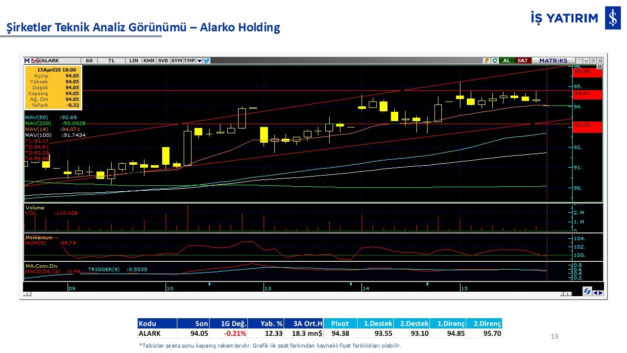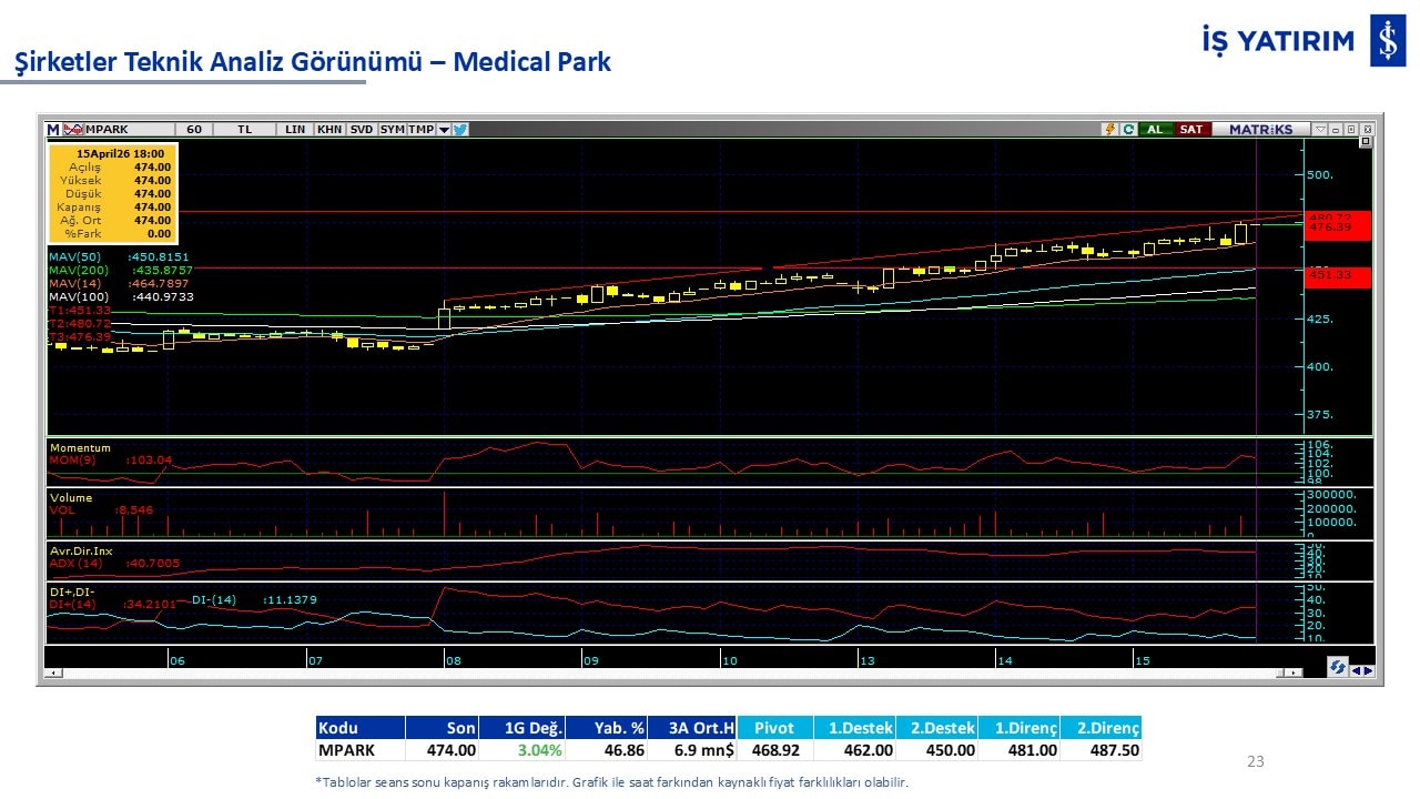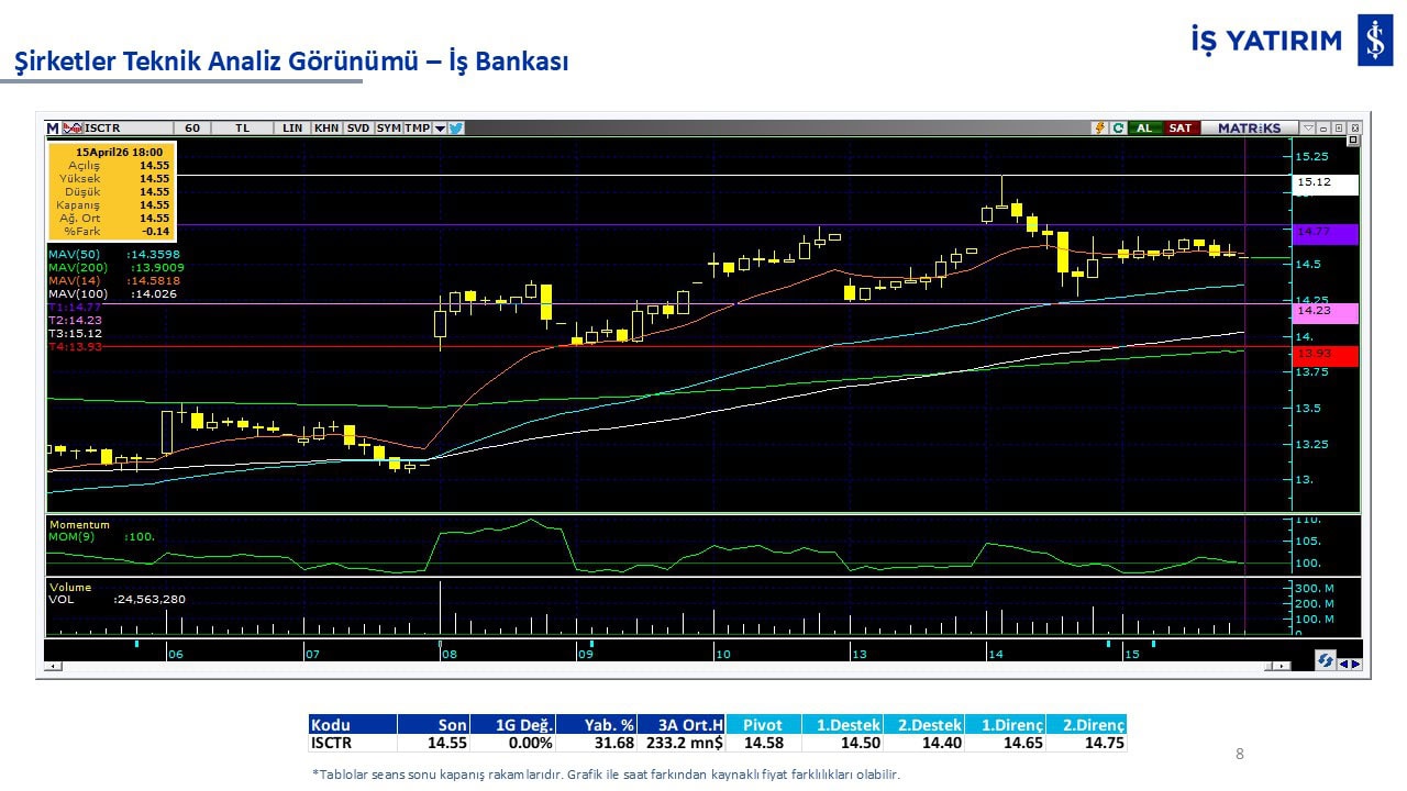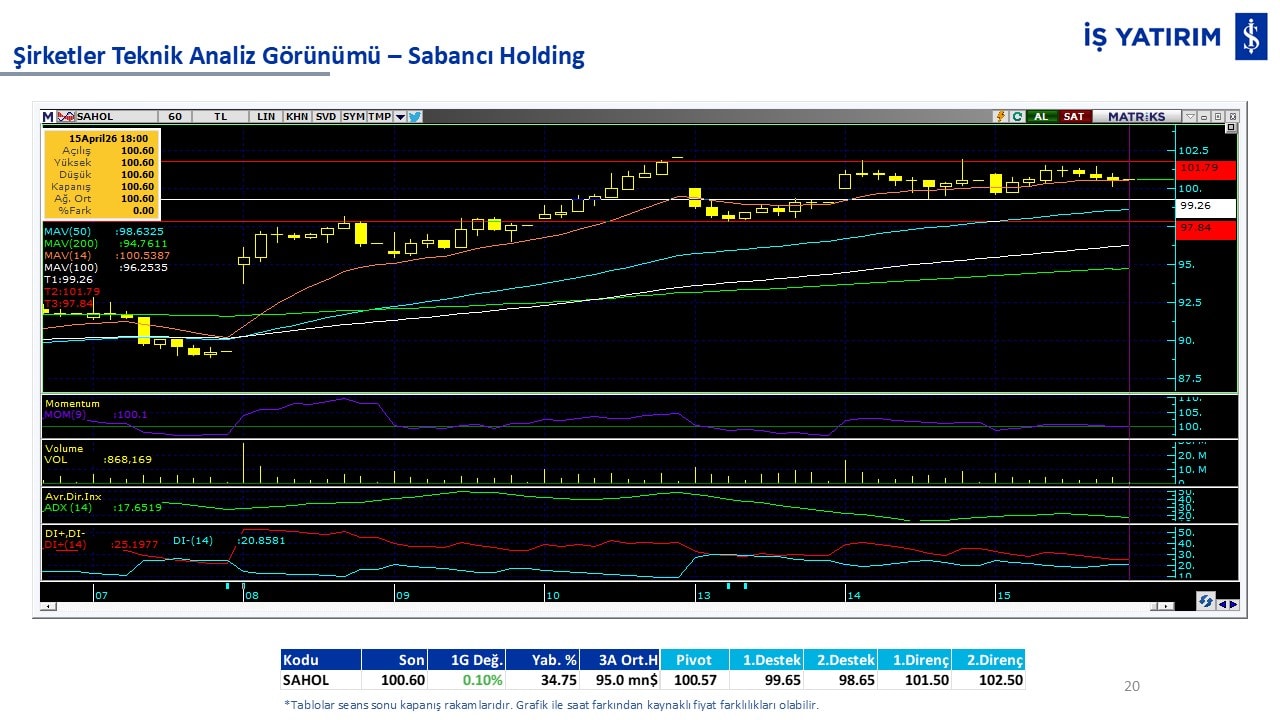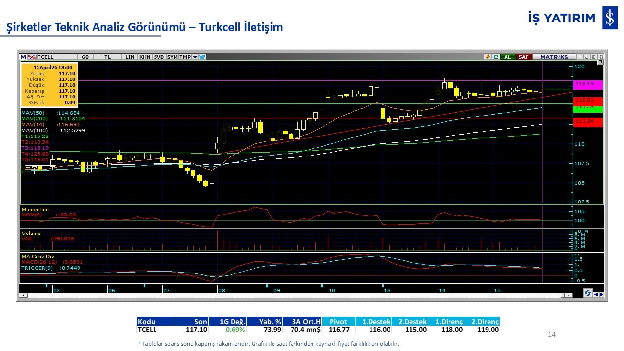 Teknik analiz görünümü olan şirketler: GARAN, THYAO, ISCTR, AKBNK, YKBNK, VAKBN, HALKB, EKGYO, TCELL, ENKAI, KCHOL, MAVI, ARCLK, ALARK, SAHOL, AGHOL, SOKM, MPARK.