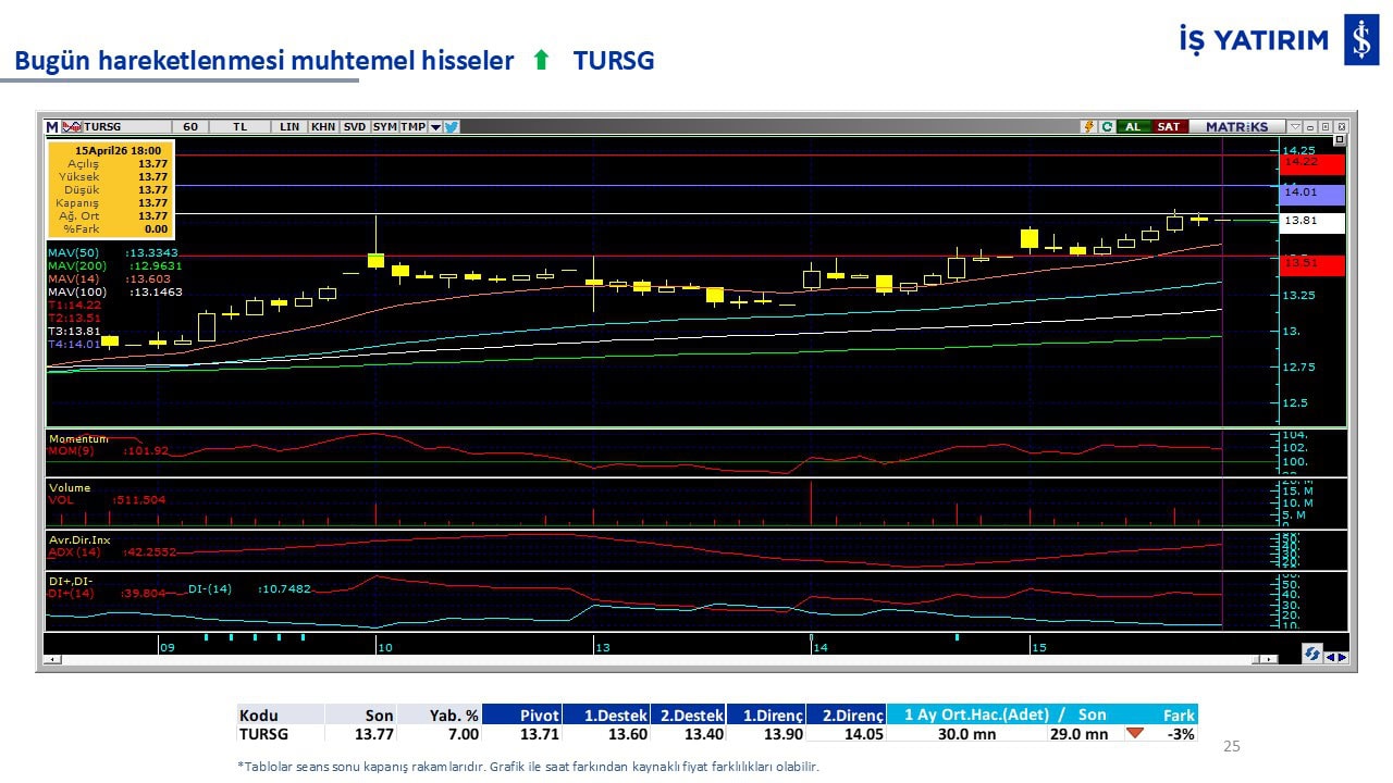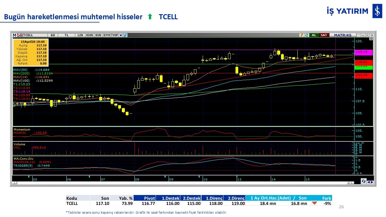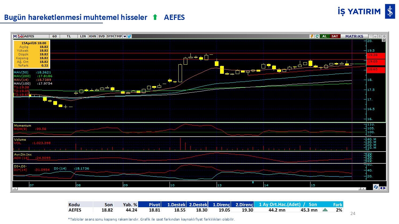 Bugün hareketlenmesi muhtemel hisseler: AEFES-TURSG-TCELL