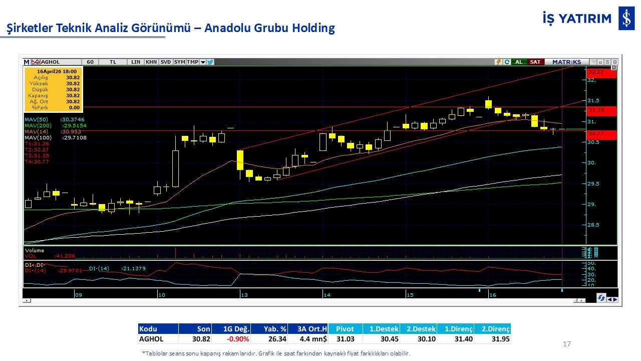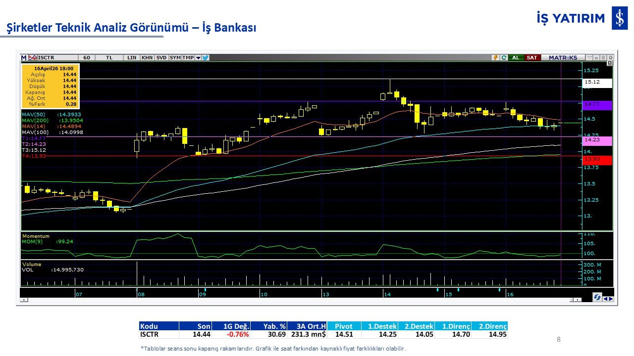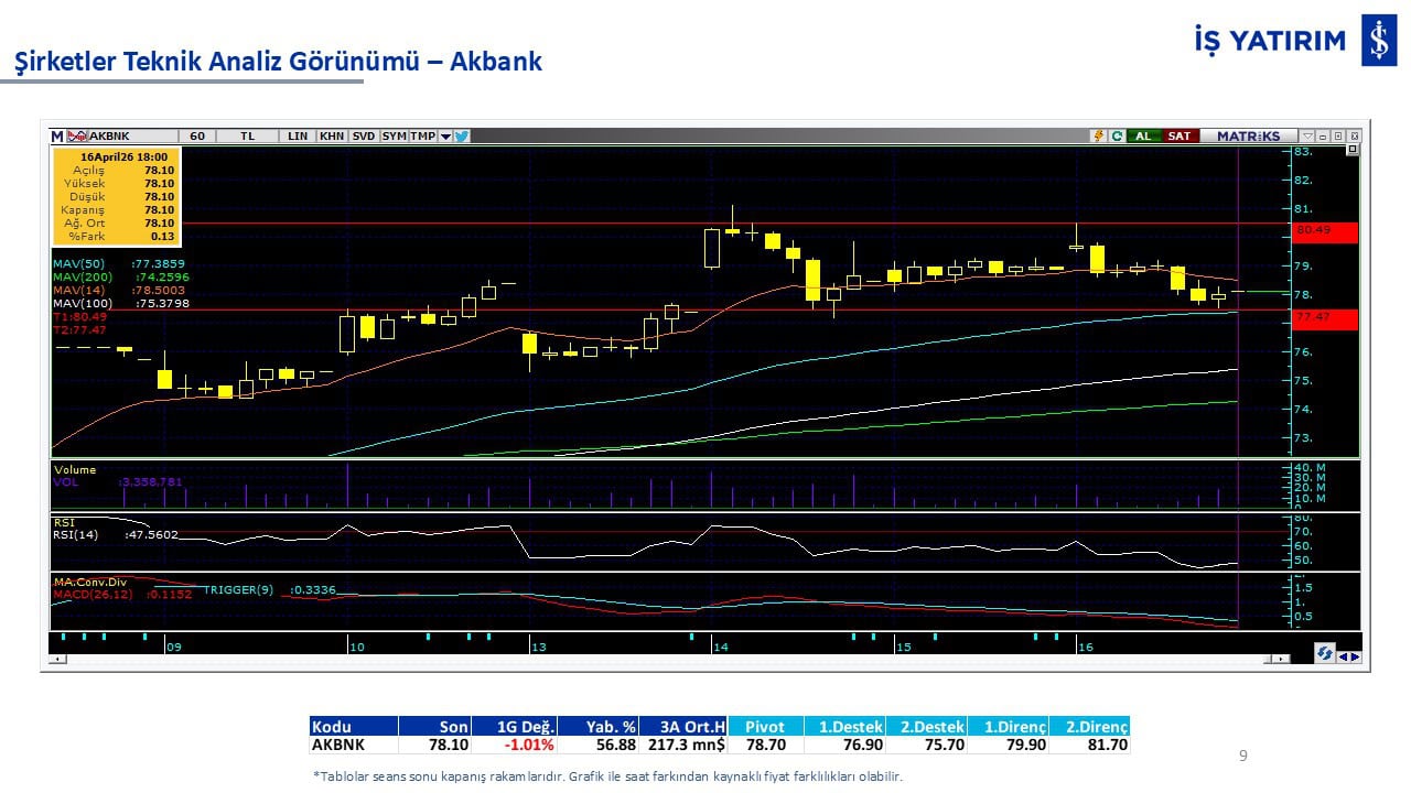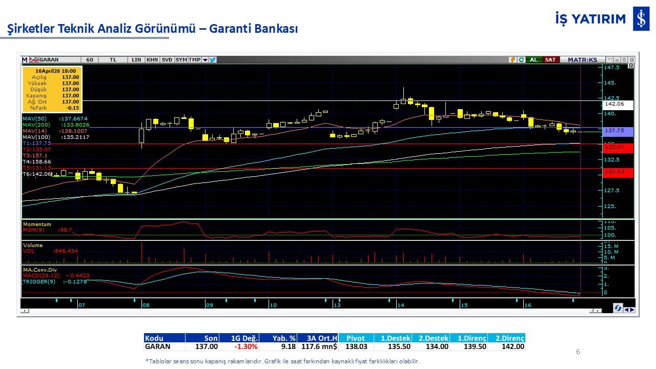 Teknik analiz görünümü olan şirketler: GARAN, THYAO, ISCTR, AKBNK, YKBNK, VAKBN, HALKB, EKGYO, TCELL, ENKAI, KCHOL, MAVI, ARCLK, ALARK, SAHOL, AGHOL, SOKM, MPARK.