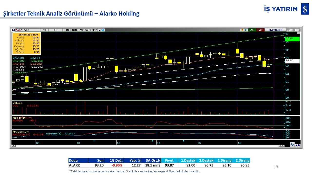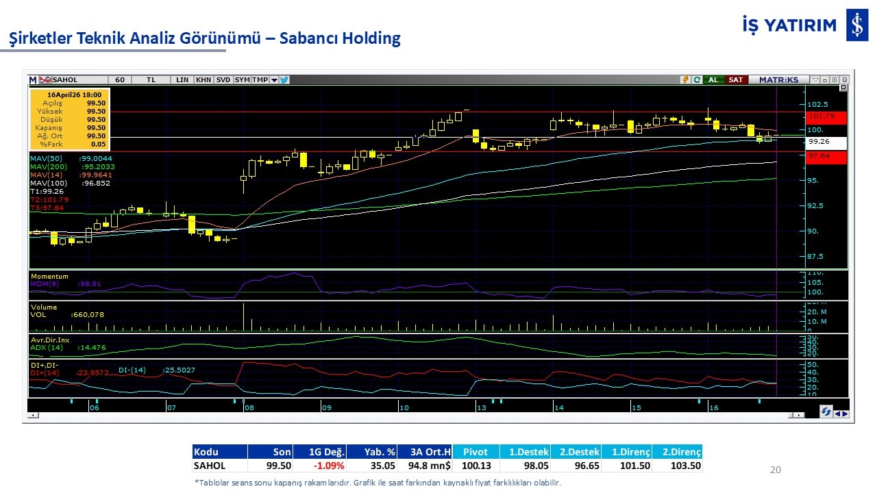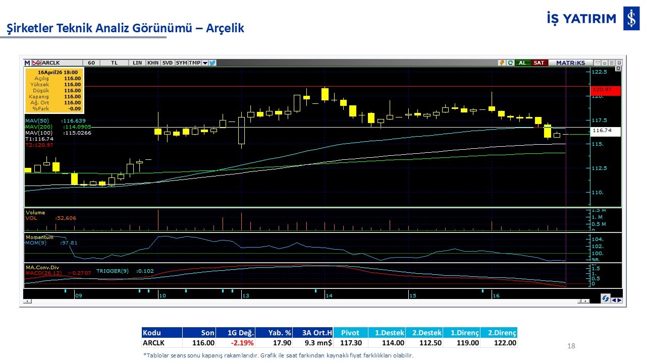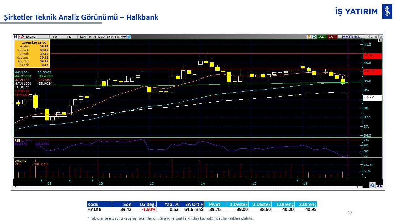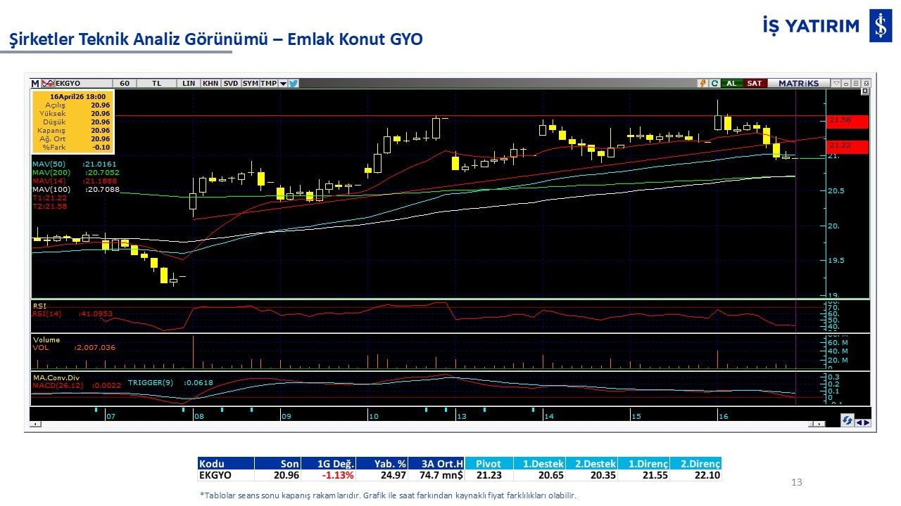 Teknik analiz görünümü olan şirketler: GARAN, THYAO, ISCTR, AKBNK, YKBNK, VAKBN, HALKB, EKGYO, TCELL, ENKAI, KCHOL, MAVI, ARCLK, ALARK, SAHOL, AGHOL, SOKM, MPARK.