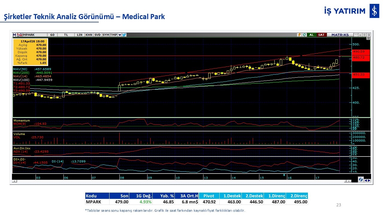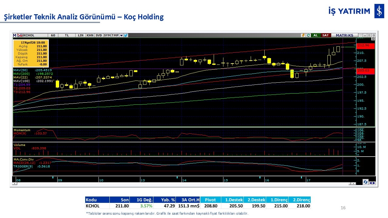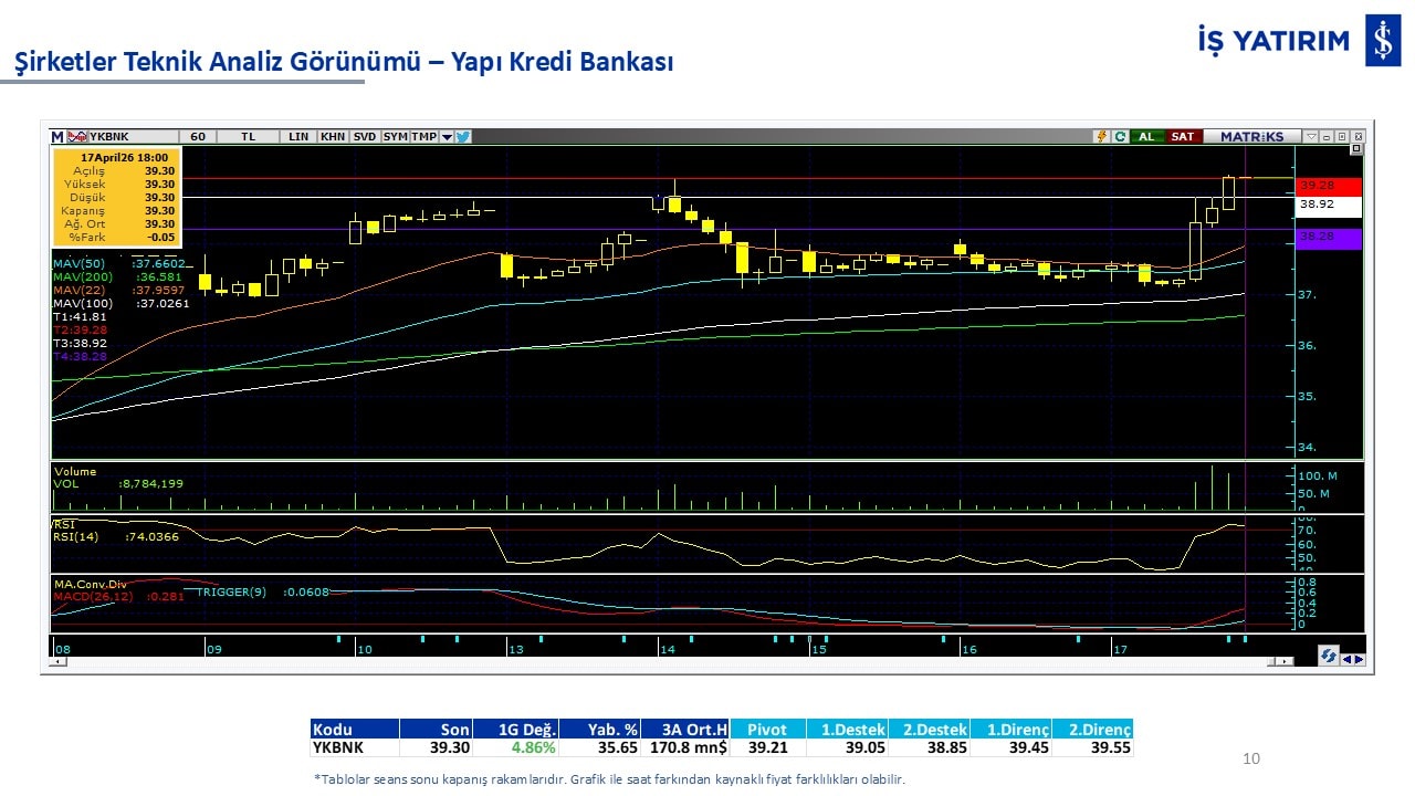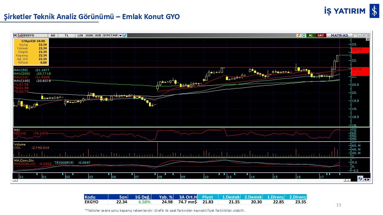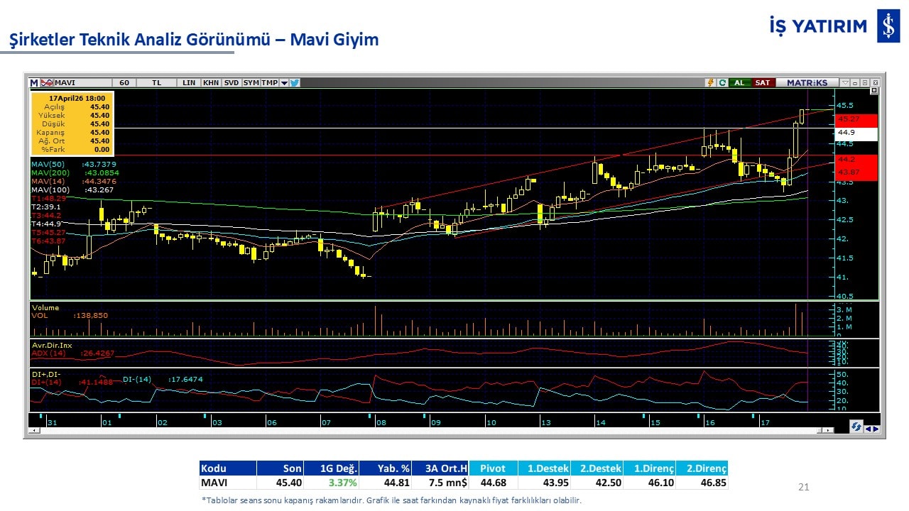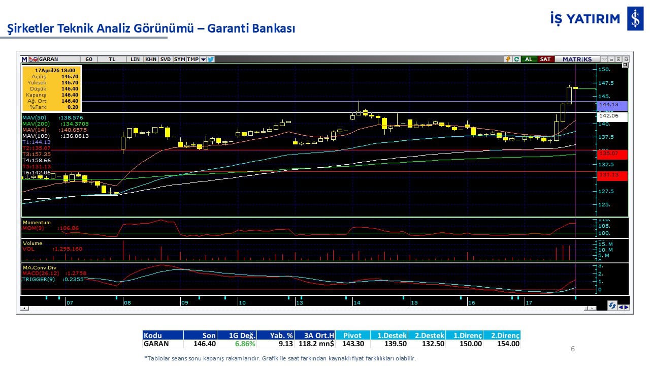 Teknik analiz görünümü olan şirketler: GARAN, THYAO, ISCTR, AKBNK, YKBNK, VAKBN, HALKB, EKGYO, TCELL, ENKAI, KCHOL, MAVI, ARCLK, ALARK, SAHOL, AGHOL, SOKM, MPARK.