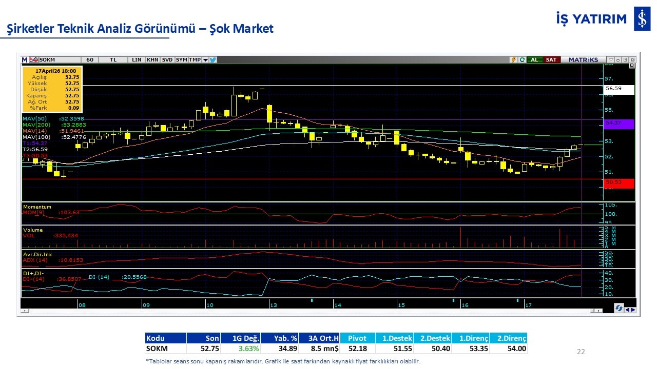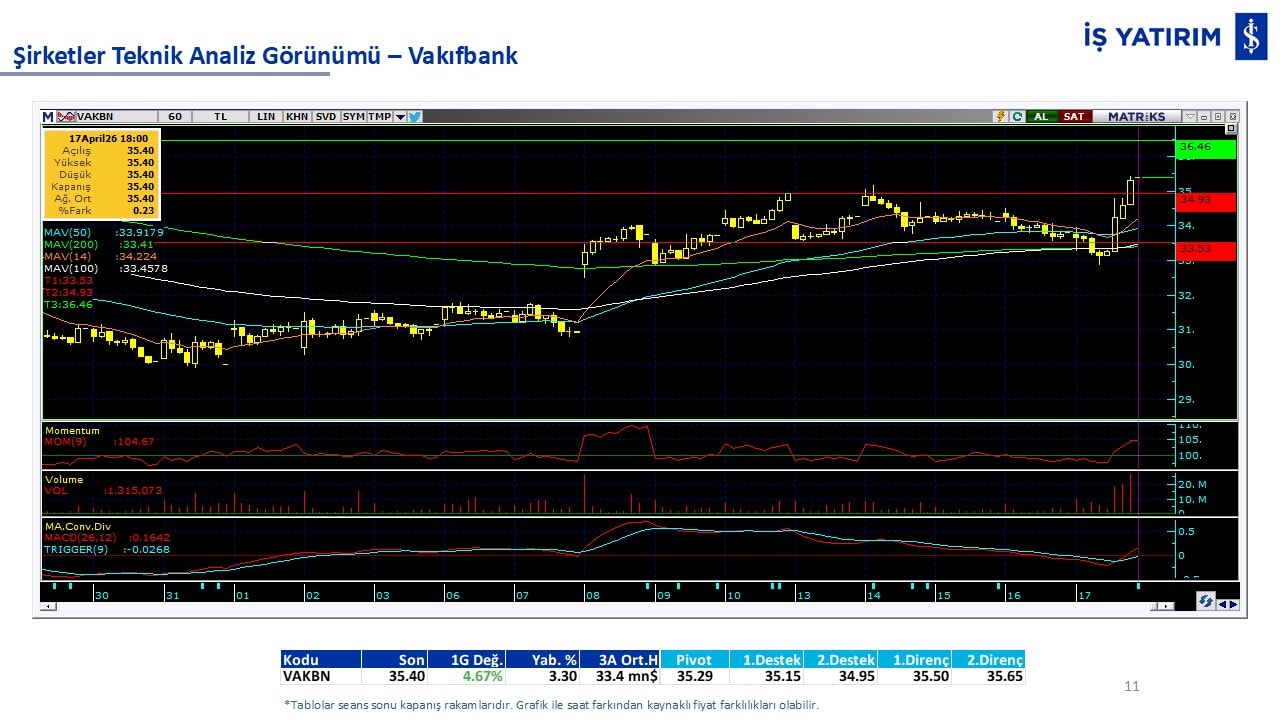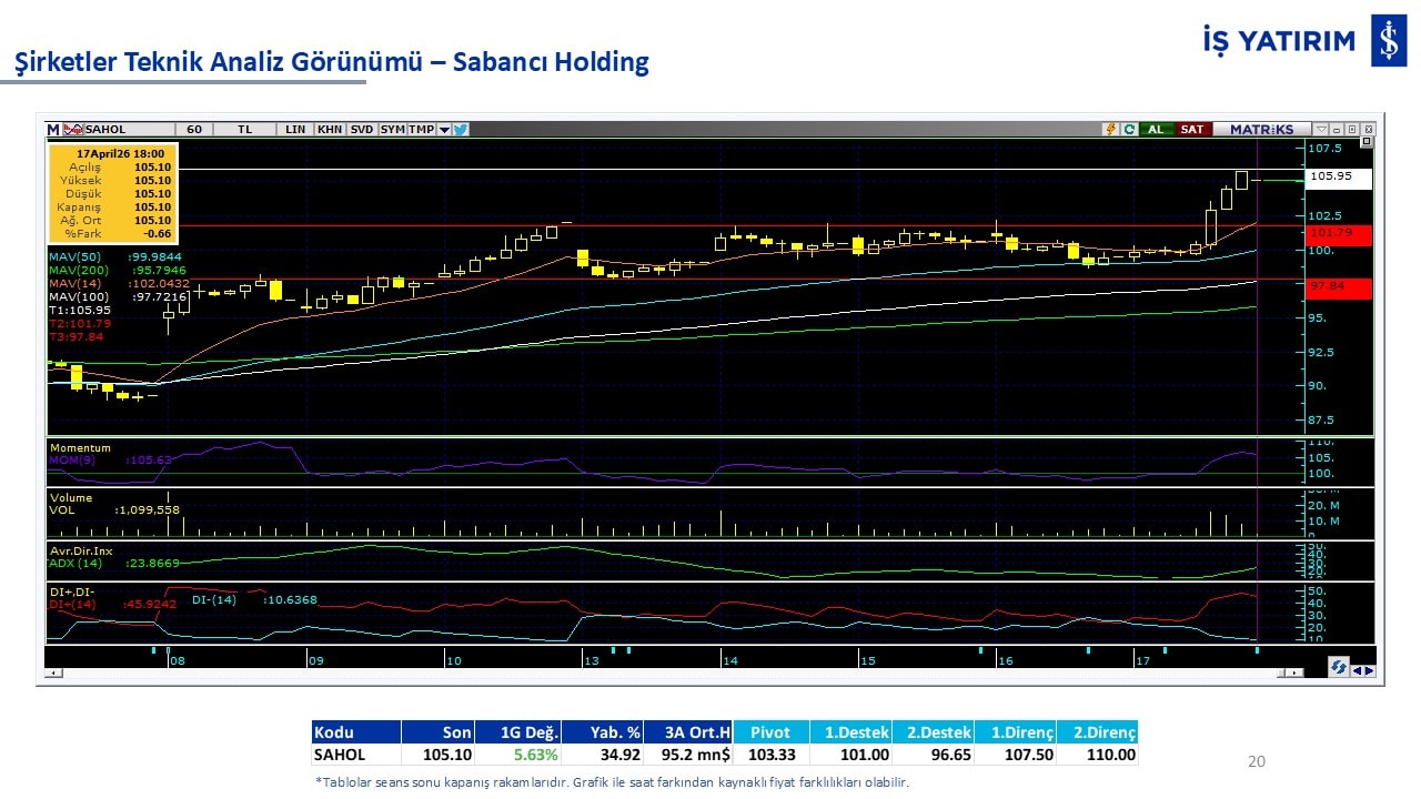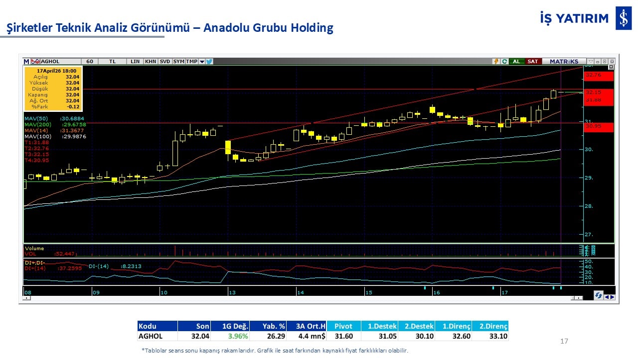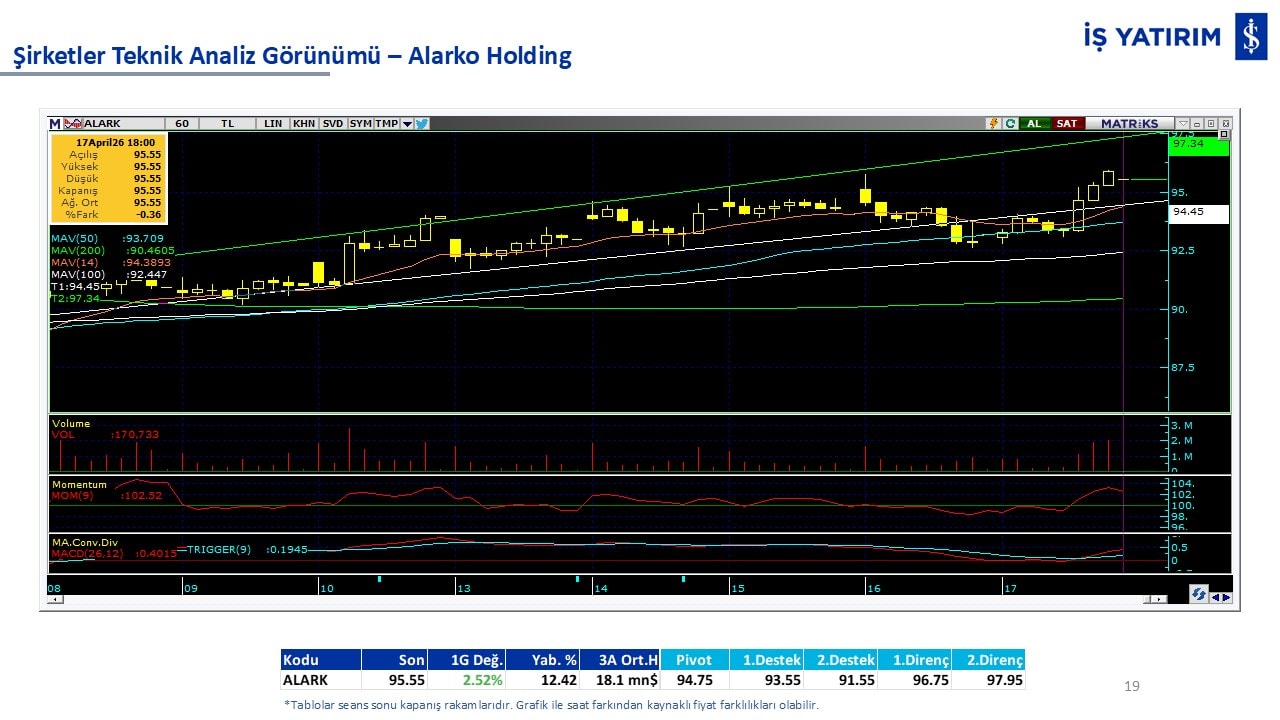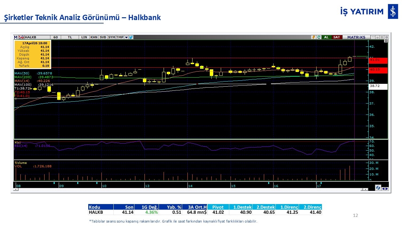 Teknik analiz görünümü olan şirketler: GARAN, THYAO, ISCTR, AKBNK, YKBNK, VAKBN, HALKB, EKGYO, TCELL, ENKAI, KCHOL, MAVI, ARCLK, ALARK, SAHOL, AGHOL, SOKM, MPARK.