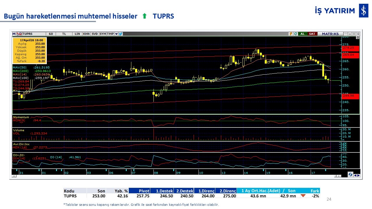 Bugün hareketlenmesi muhtemel hisseler: TUPRS-PETKM