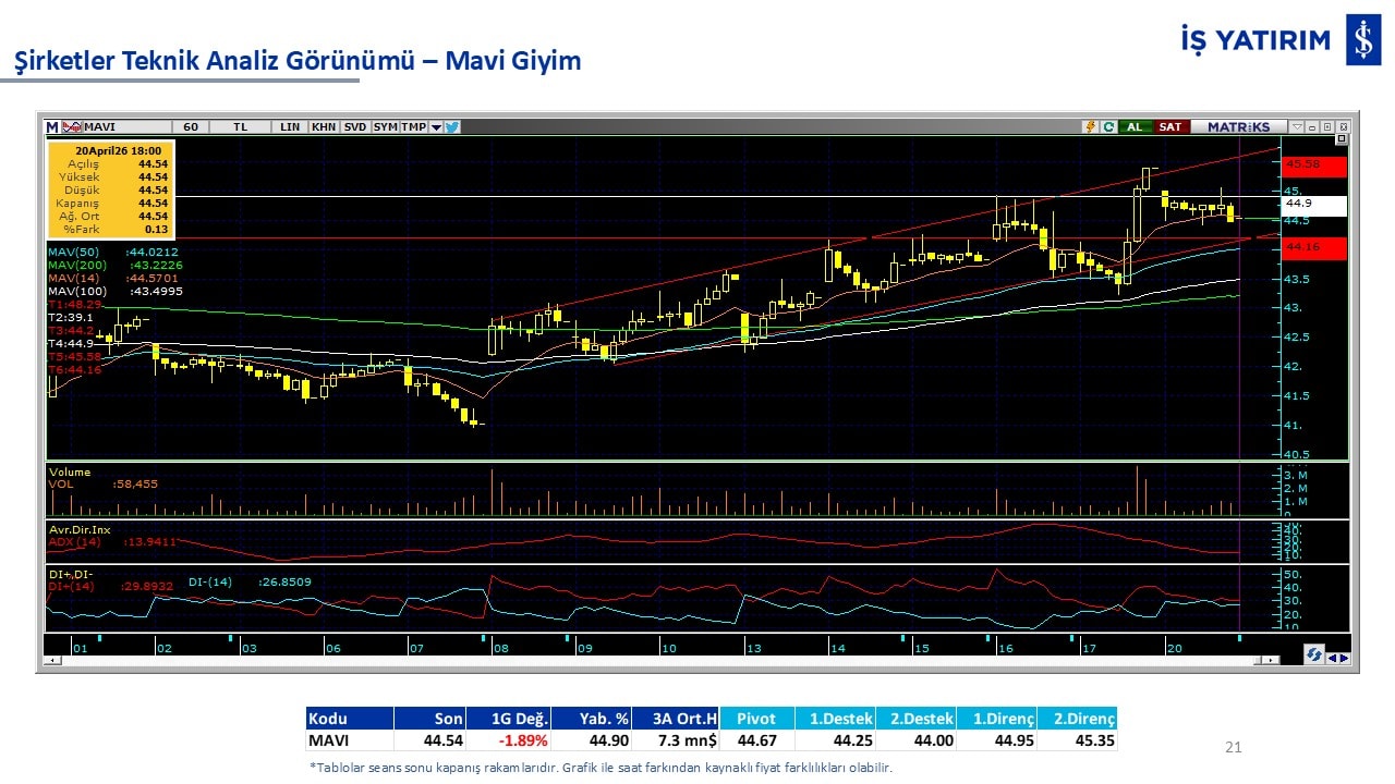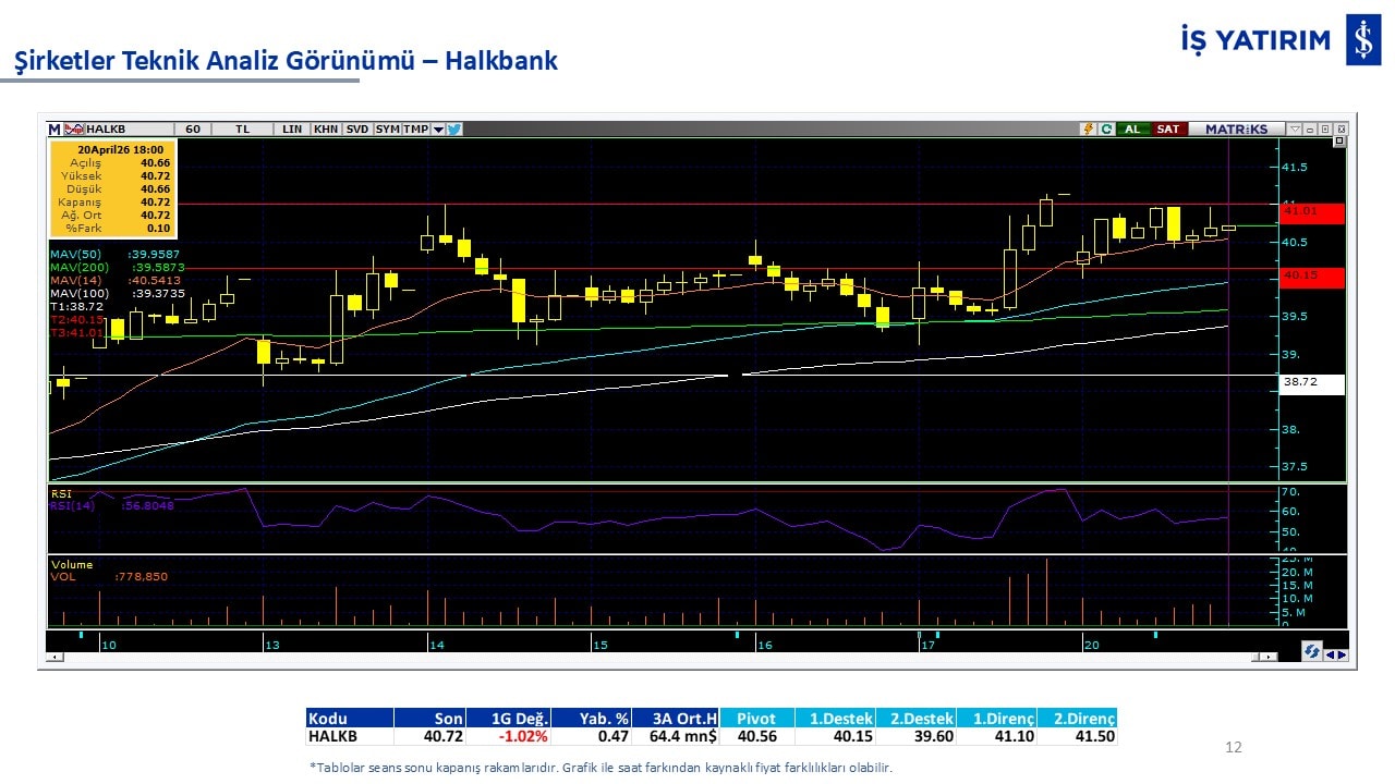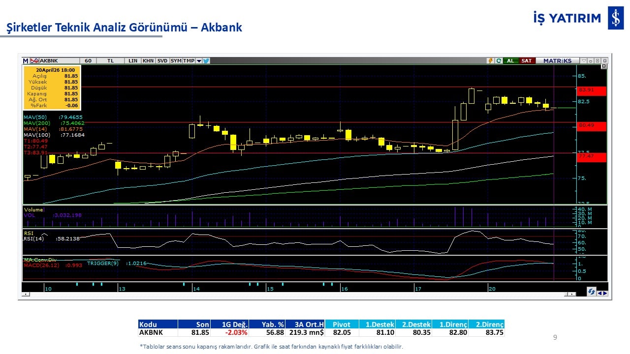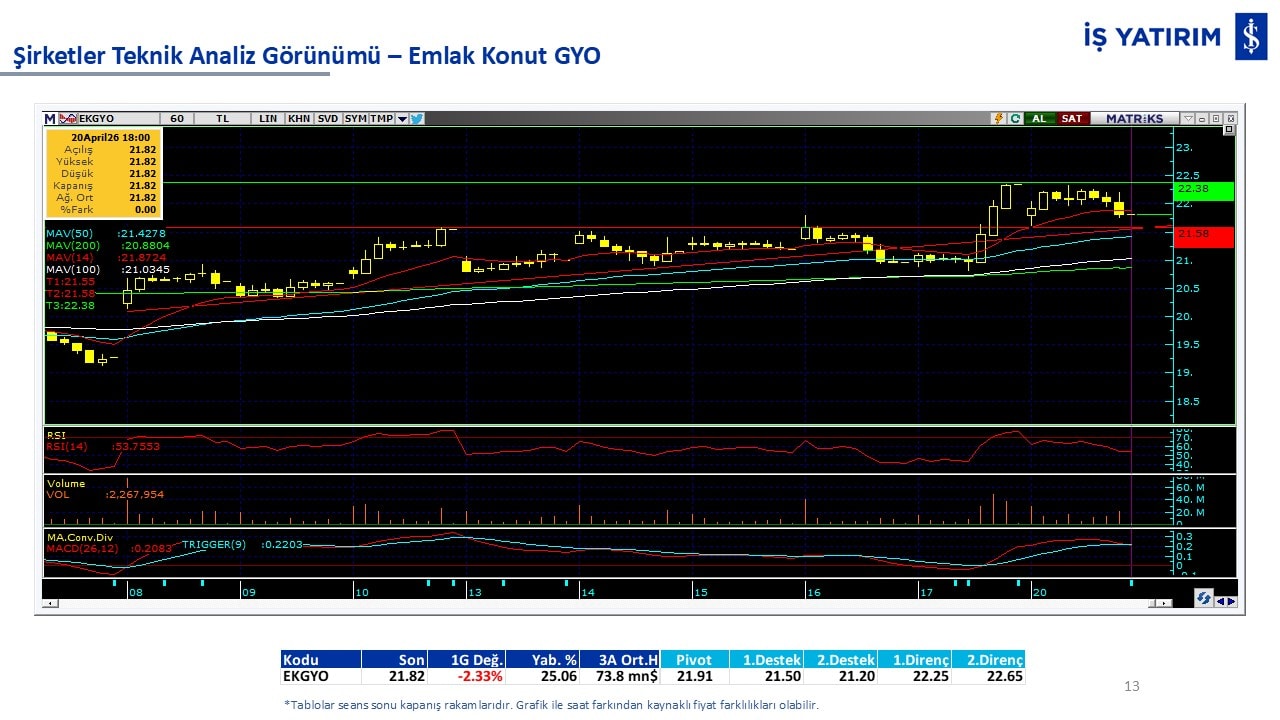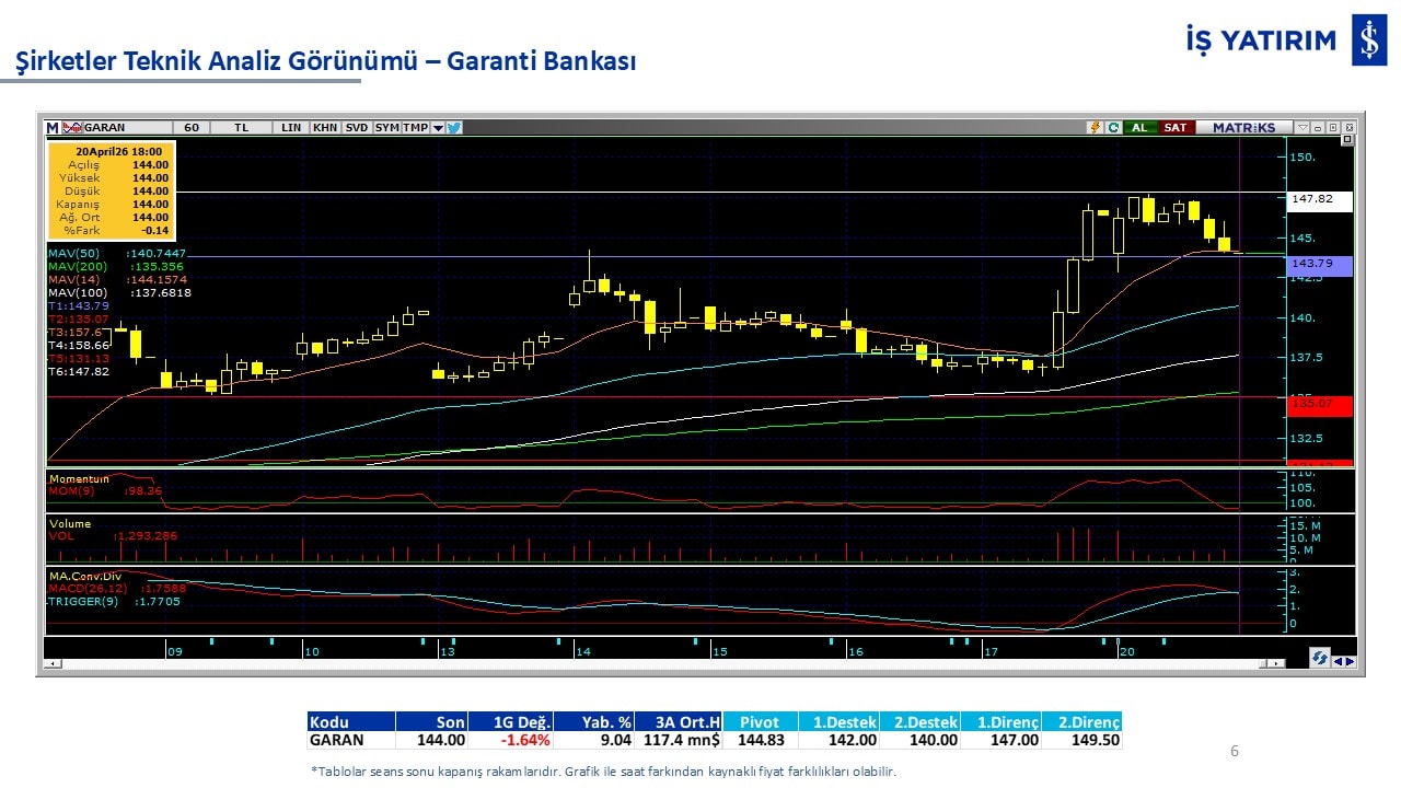Teknik analiz görünümü olan şirketler: GARAN, THYAO, ISCTR, AKBNK, YKBNK, VAKBN, HALKB, EKGYO, TCELL, ENKAI, KCHOL, MAVI, ARCLK, ALARK, SAHOL, AGHOL, SOKM, MPARK.