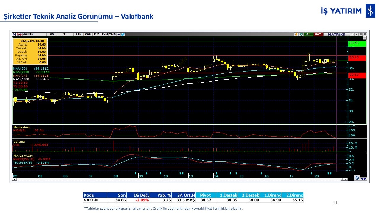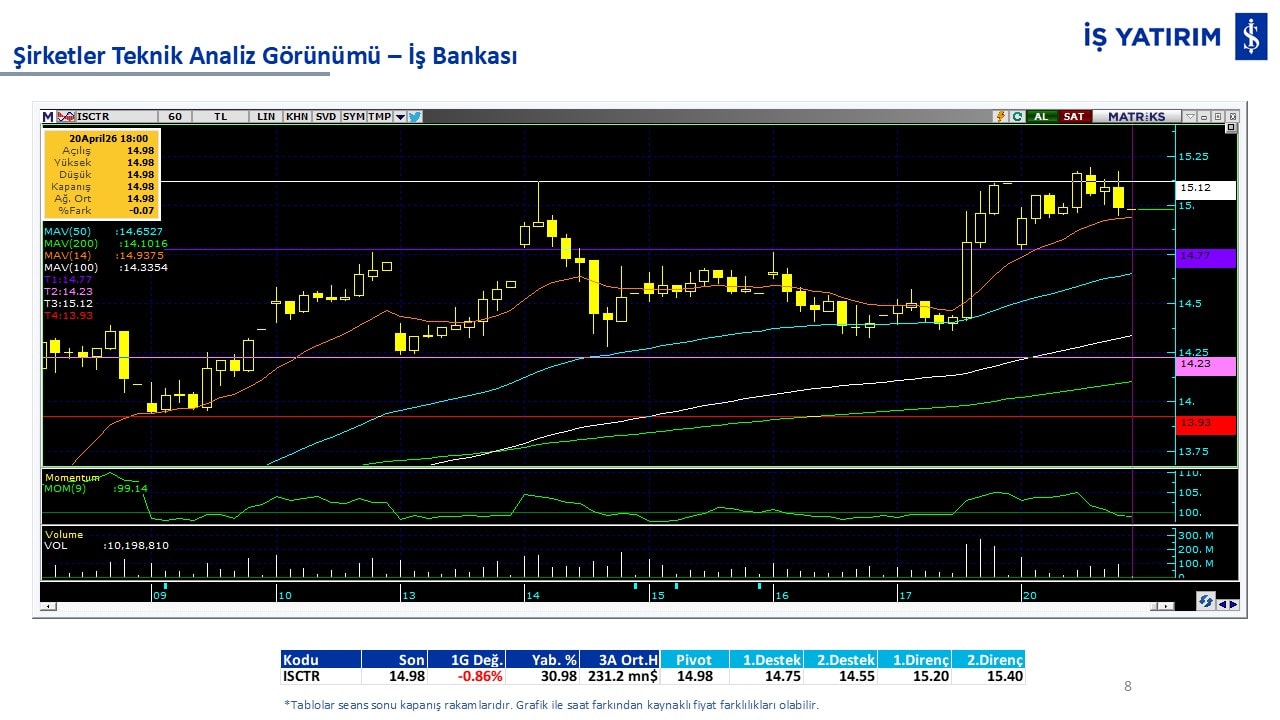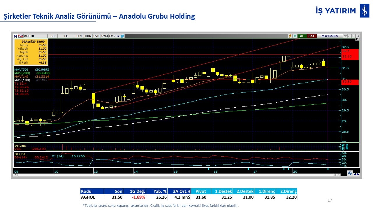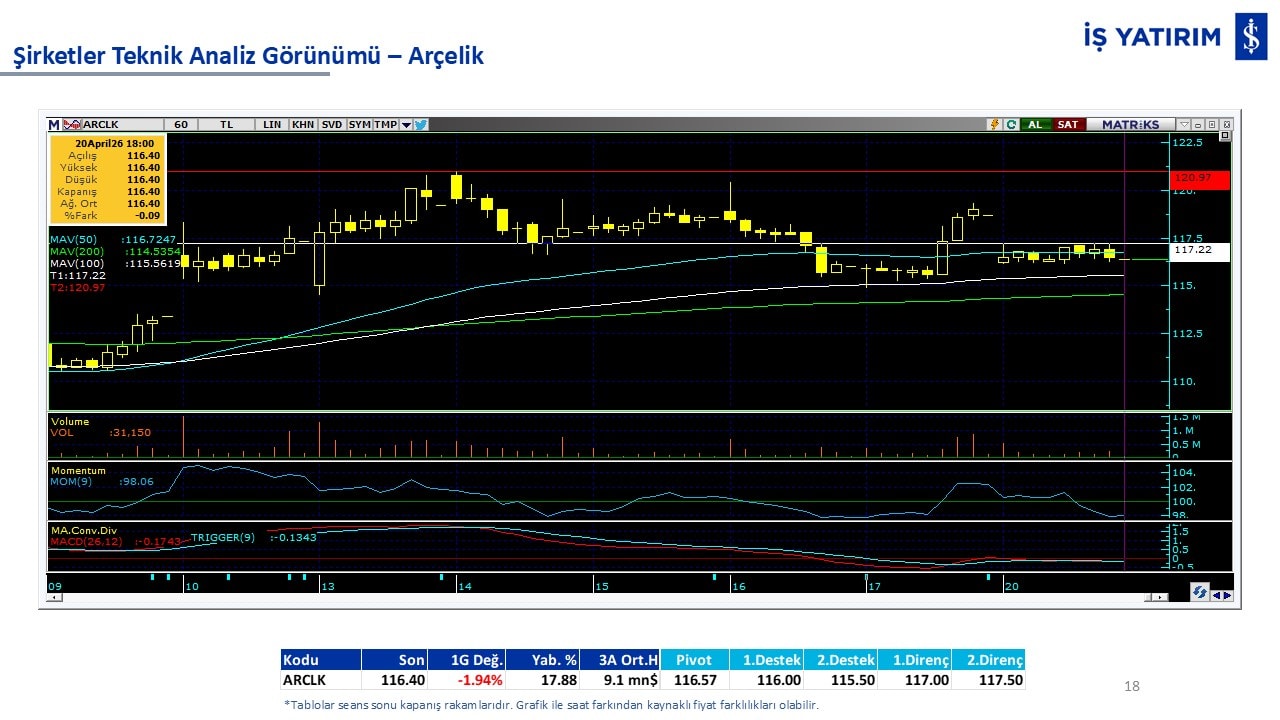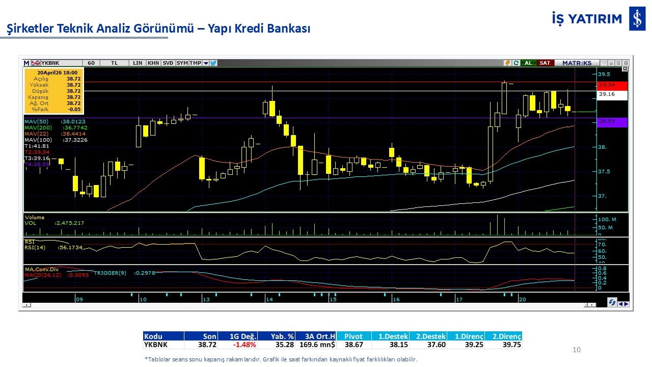 Teknik analiz görünümü olan şirketler: GARAN, THYAO, ISCTR, AKBNK, YKBNK, VAKBN, HALKB, EKGYO, TCELL, ENKAI, KCHOL, MAVI, ARCLK, ALARK, SAHOL, AGHOL, SOKM, MPARK.