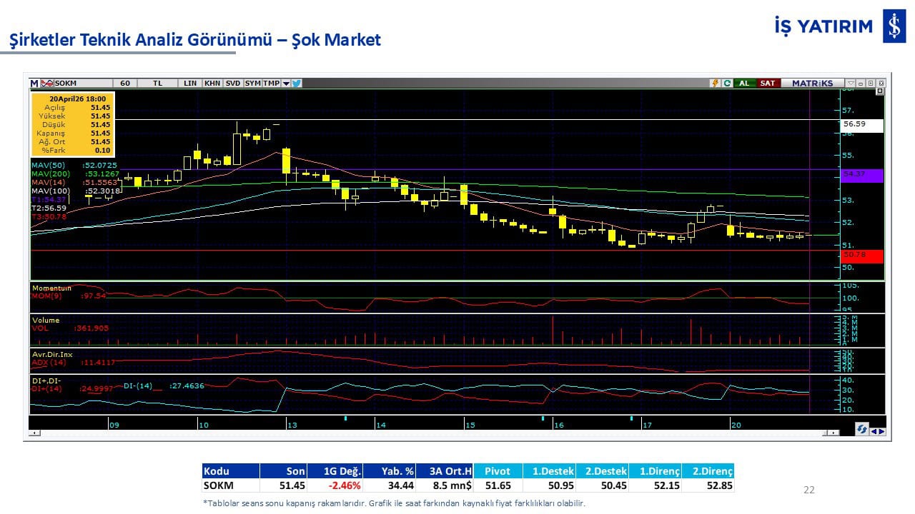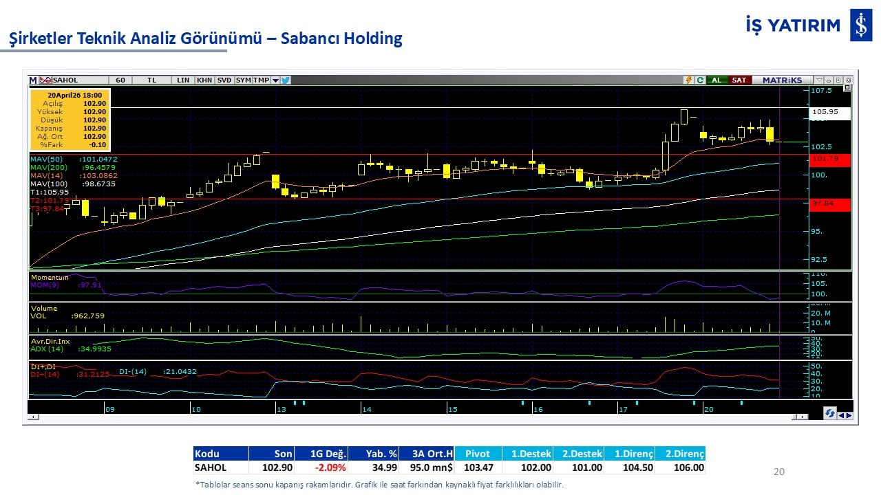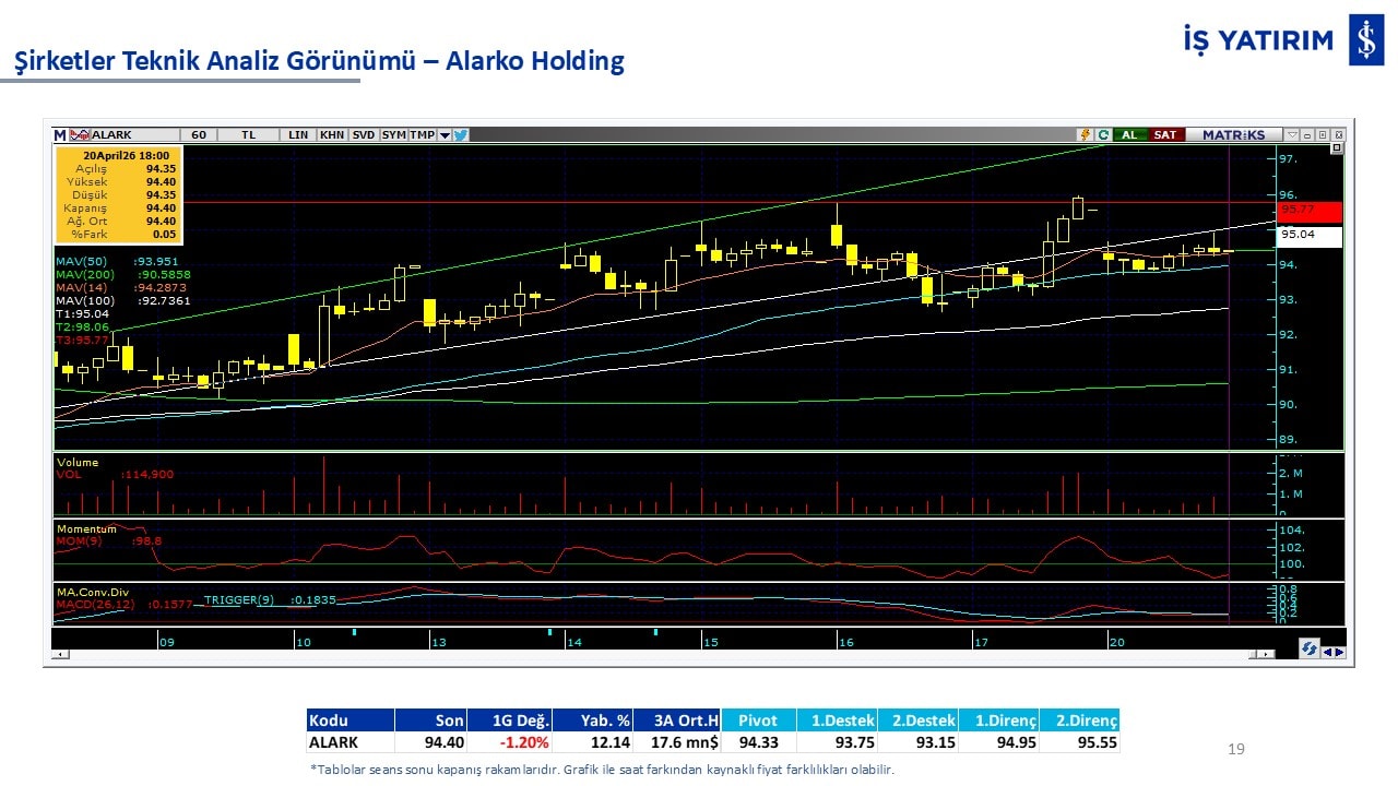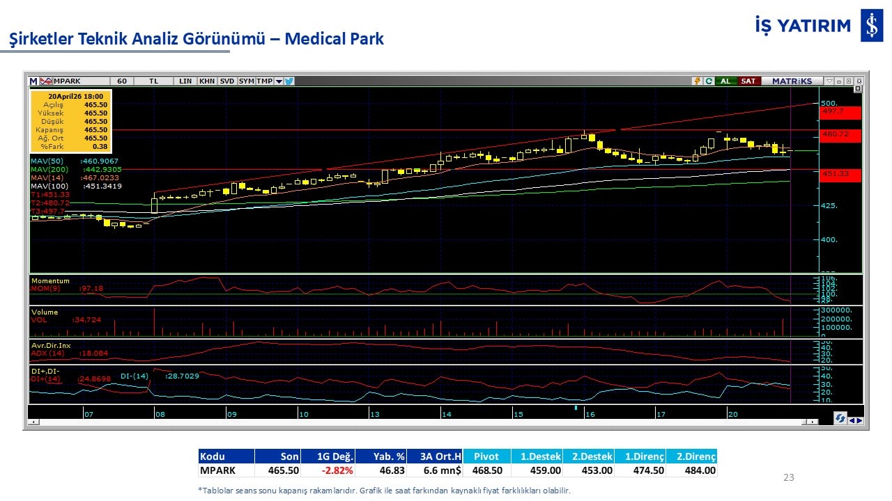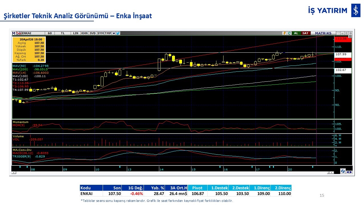 Teknik analiz görünümü olan şirketler: GARAN, THYAO, ISCTR, AKBNK, YKBNK, VAKBN, HALKB, EKGYO, TCELL, ENKAI, KCHOL, MAVI, ARCLK, ALARK, SAHOL, AGHOL, SOKM, MPARK.