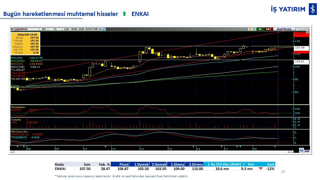 Bugün hareketlenmesi muhtemel hisseler: ENKAI-CCOLA-ASTOR