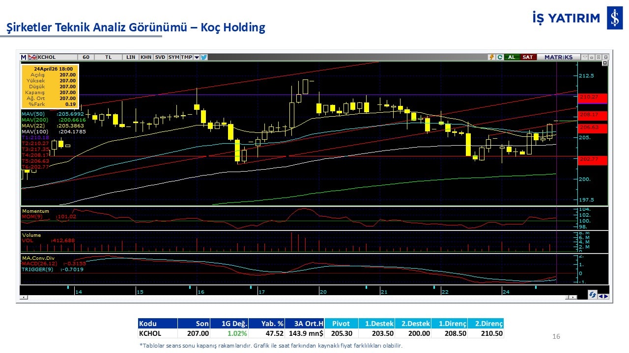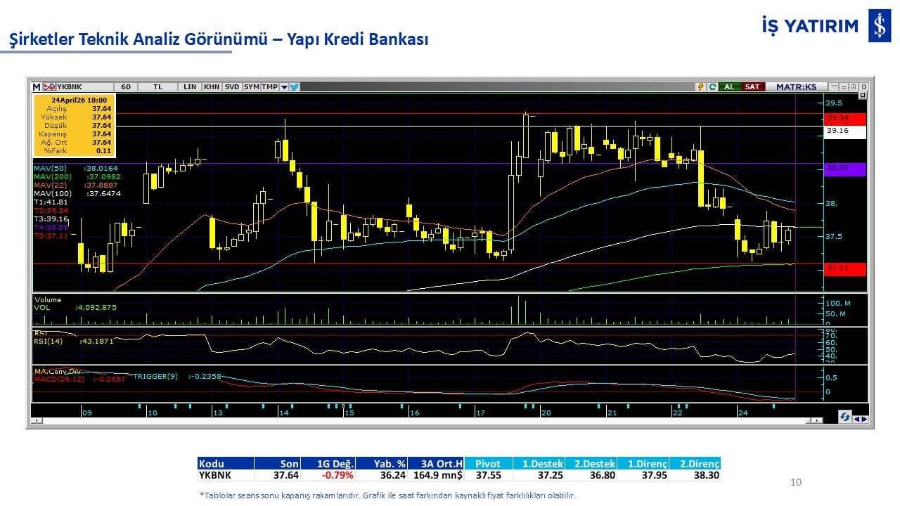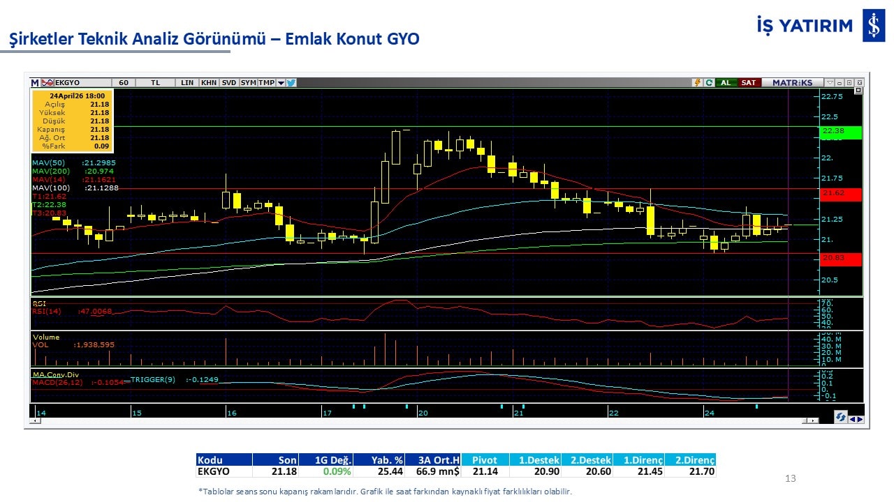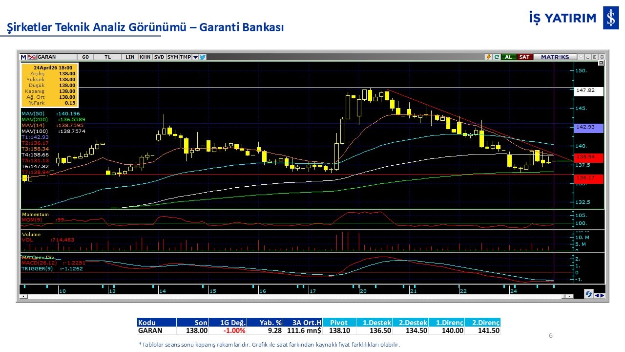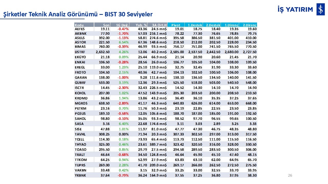 Teknik analiz görünümü olan şirketler: GARAN, THYAO, ISCTR, AKBNK, YKBNK, VAKBN, HALKB, EKGYO, TCELL, ENKAI, KCHOL, MAVI, ARCLK, ALARK, SAHOL, AGHOL, SOKM, MPARK.