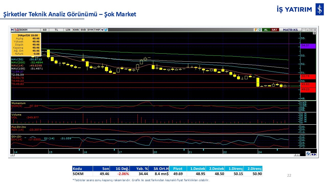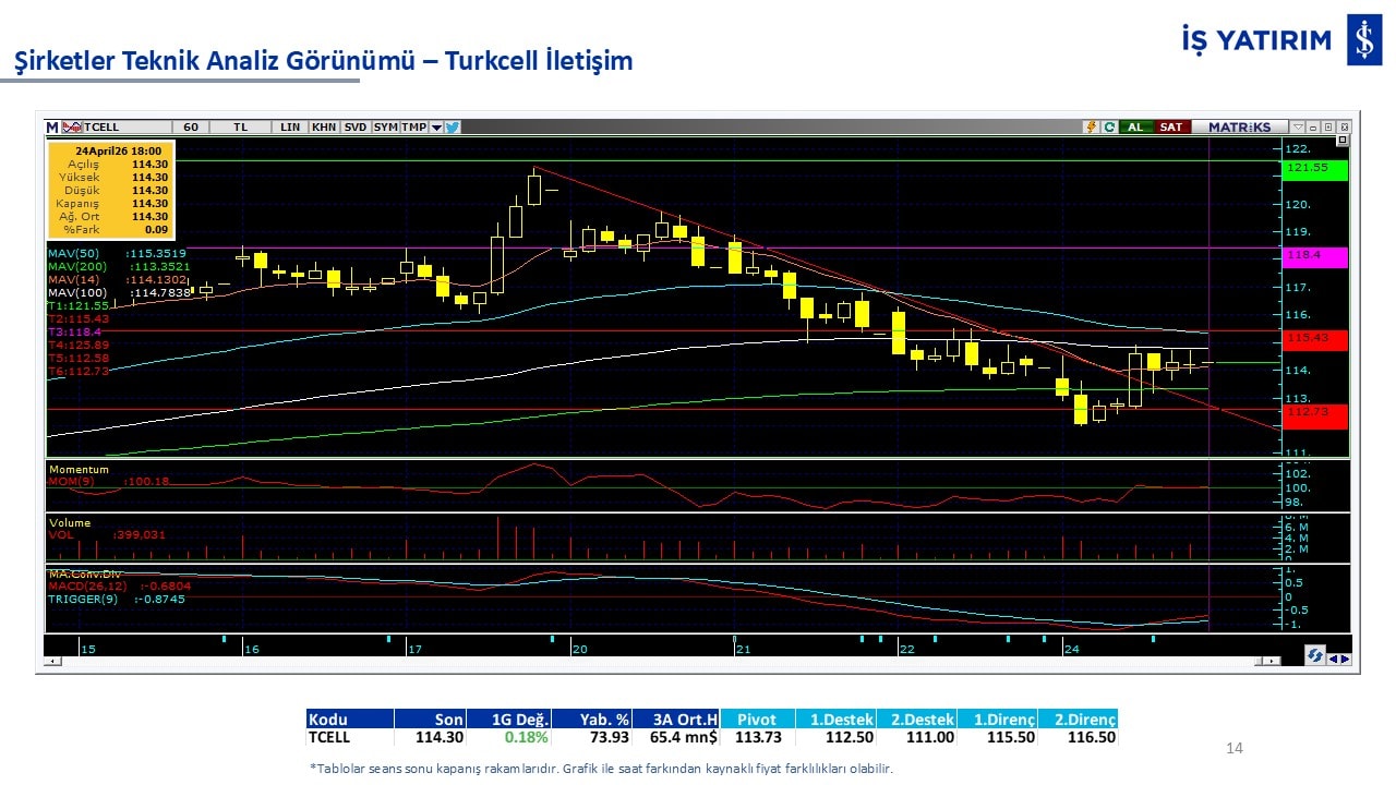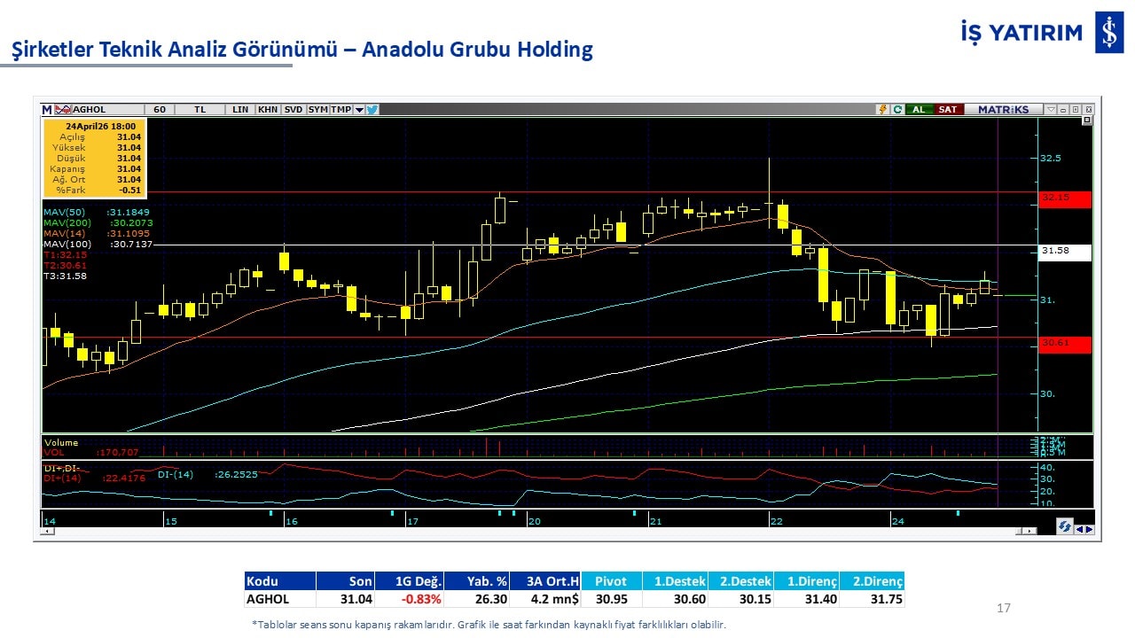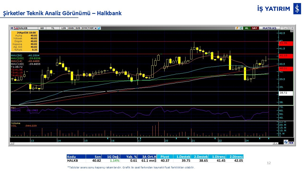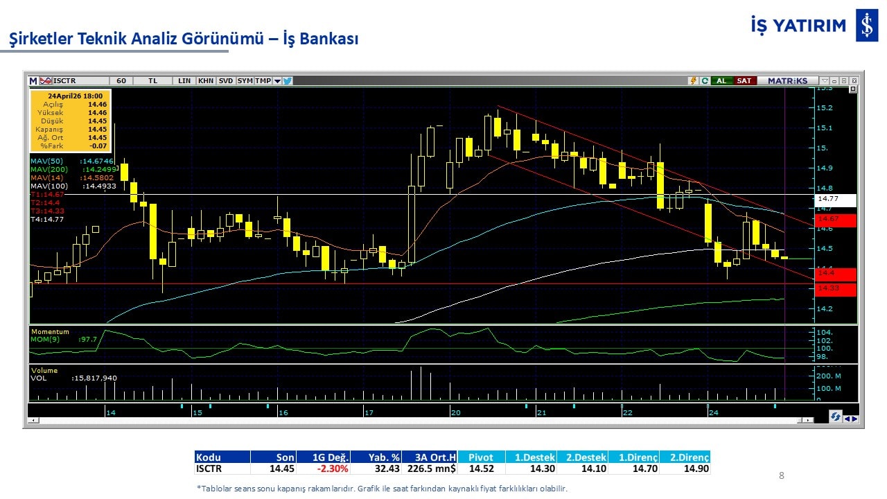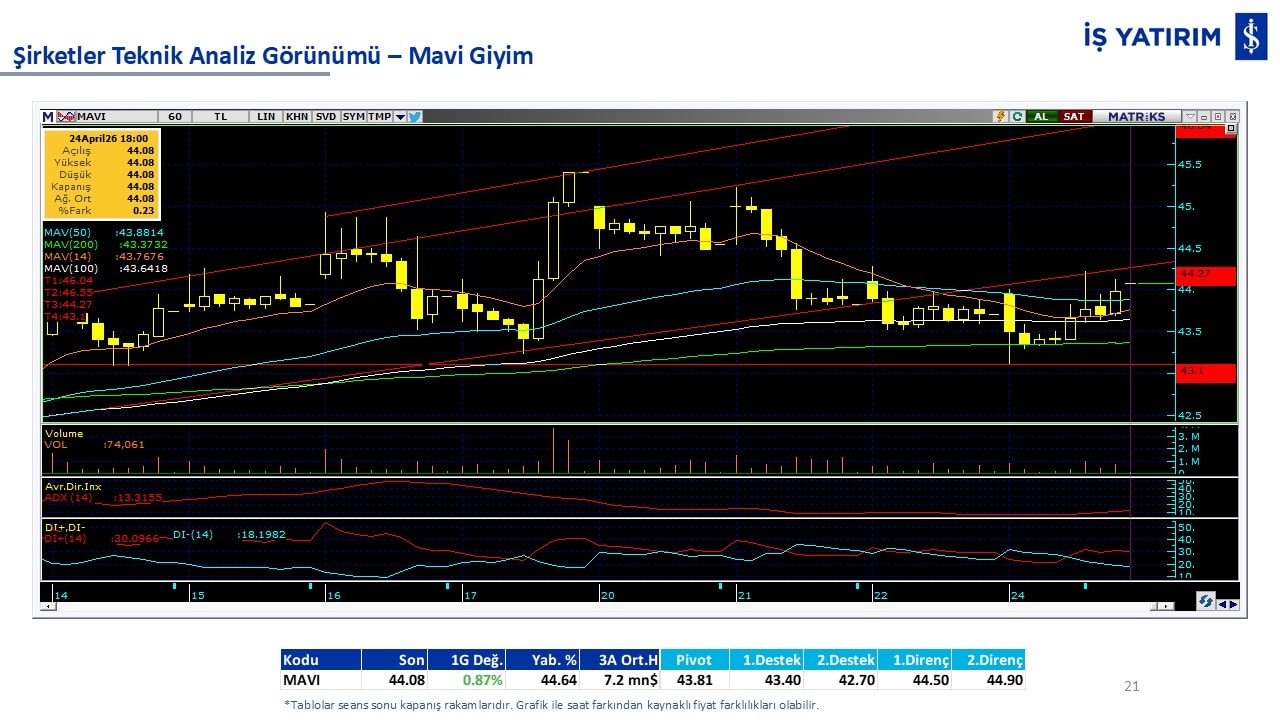 Teknik analiz görünümü olan şirketler: GARAN, THYAO, ISCTR, AKBNK, YKBNK, VAKBN, HALKB, EKGYO, TCELL, ENKAI, KCHOL, MAVI, ARCLK, ALARK, SAHOL, AGHOL, SOKM, MPARK.
