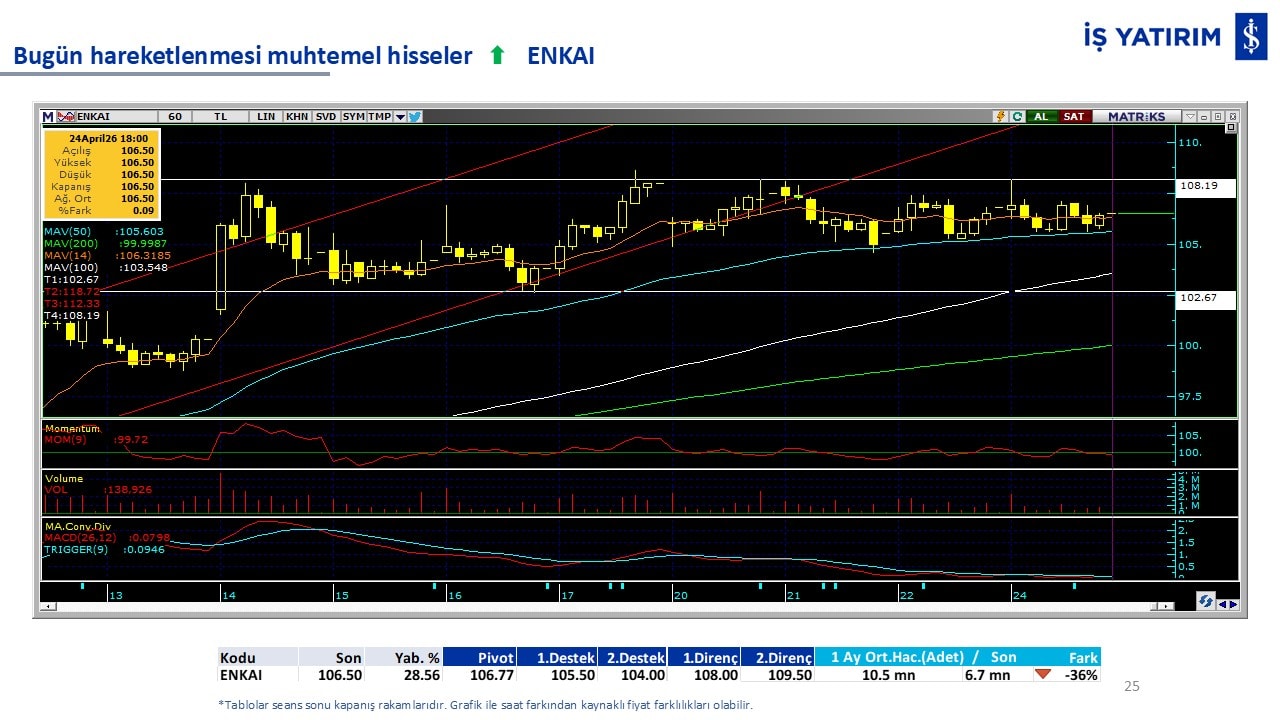Bugün hareketlenmesi muhtemel hisseler: ENKAI-KCHOL