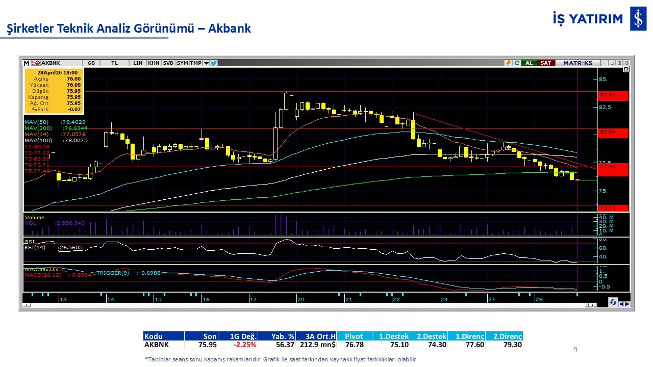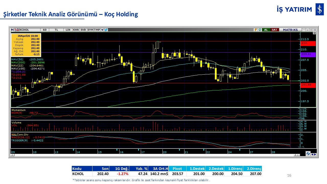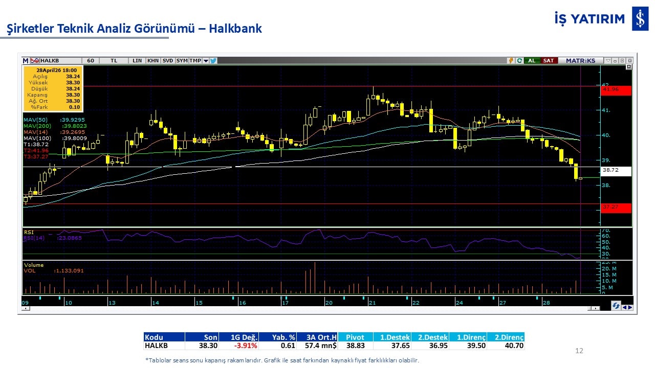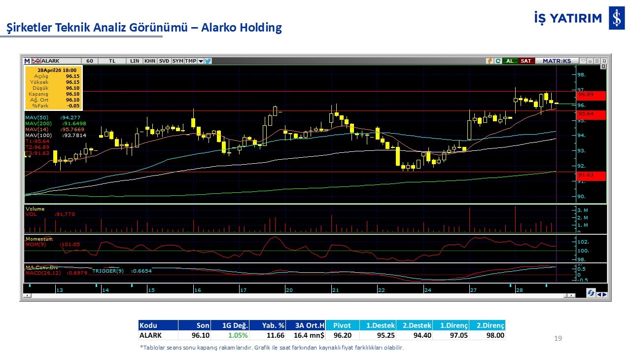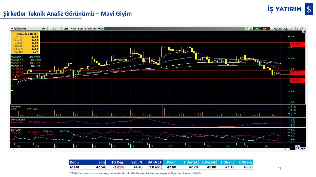 Teknik analiz görünümü olan şirketler: GARAN, THYAO, ISCTR, AKBNK, YKBNK, VAKBN, HALKB, EKGYO, TCELL, ENKAI, KCHOL, MAVI, ARCLK, ALARK, SAHOL, AGHOL, SOKM, MPARK.