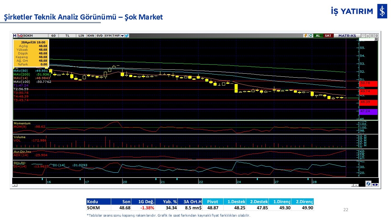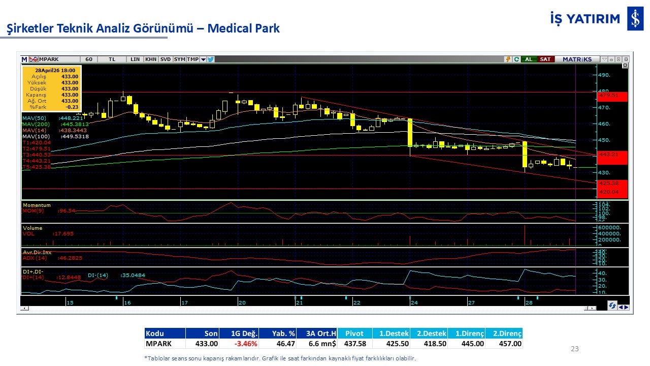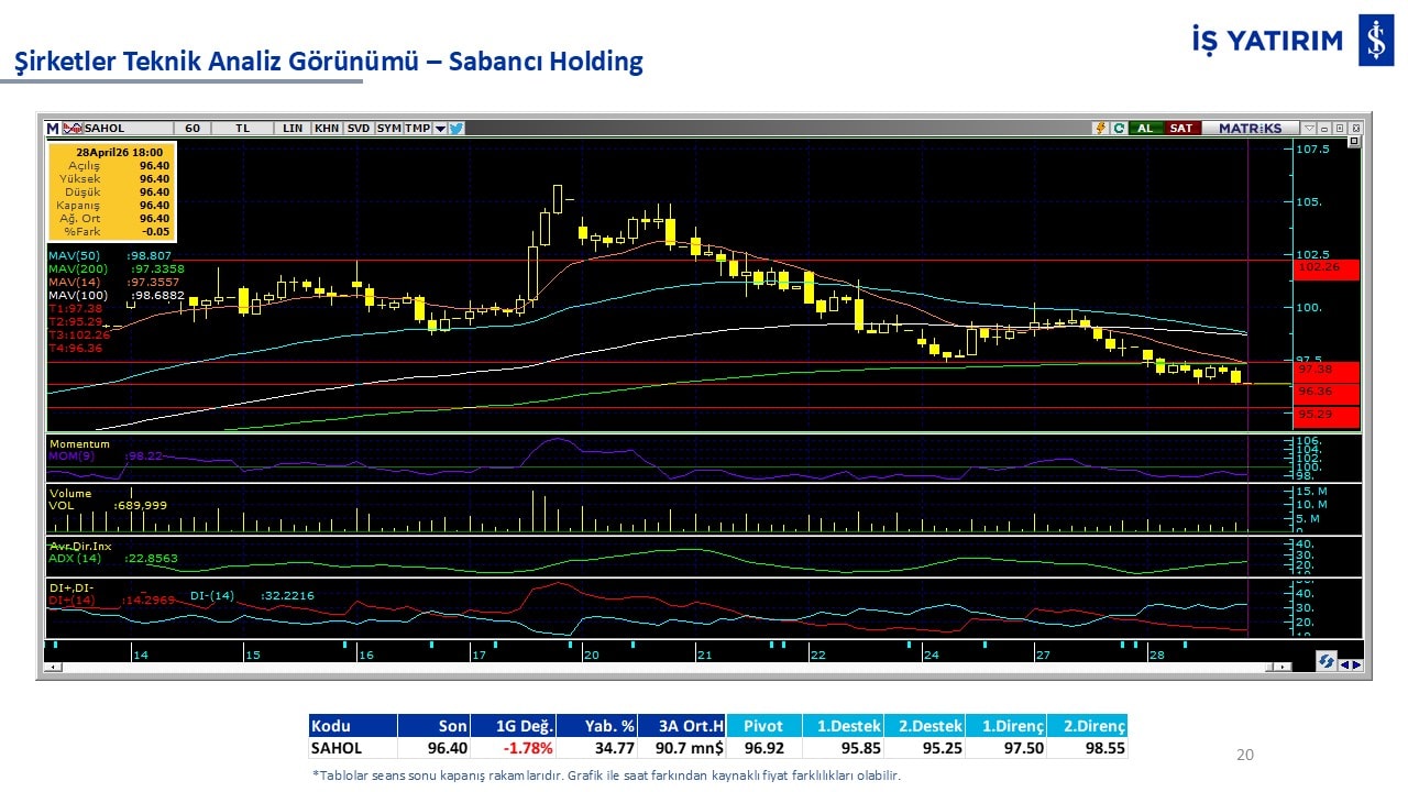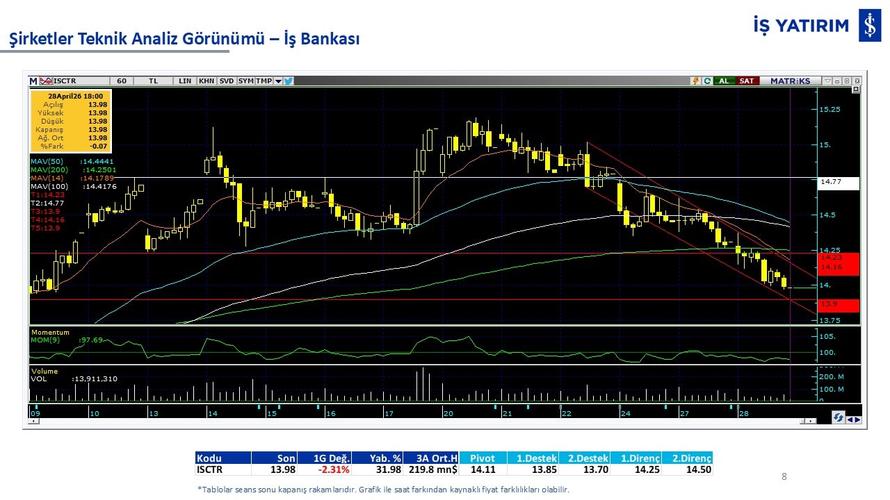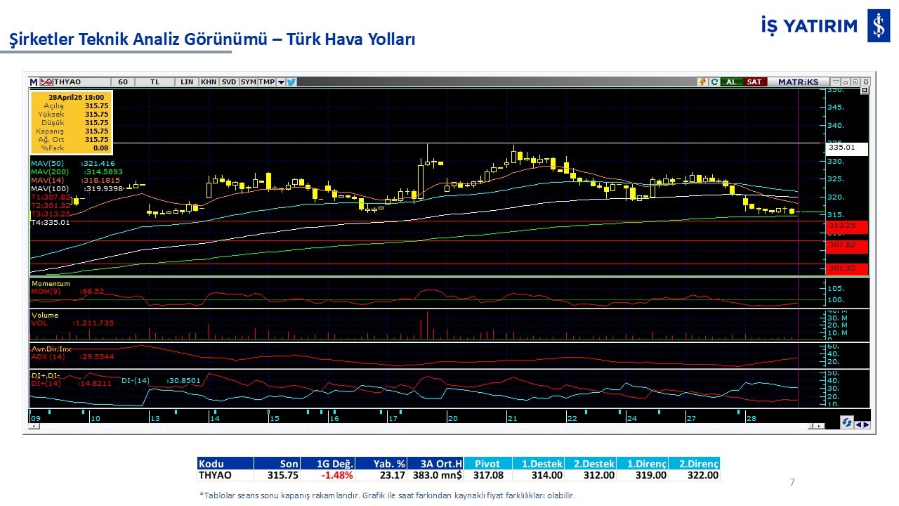 Teknik analiz görünümü olan şirketler: GARAN, THYAO, ISCTR, AKBNK, YKBNK, VAKBN, HALKB, EKGYO, TCELL, ENKAI, KCHOL, MAVI, ARCLK, ALARK, SAHOL, AGHOL, SOKM, MPARK.