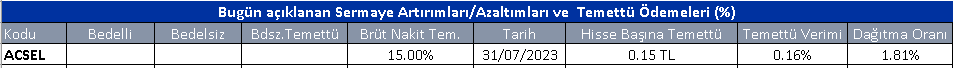 Gün içinde çıkmış veya bu sabah seans açılmadan önce açıklanmış sermaye artırımları ve temettü ödemeleri aşağıdaki tabloda görüntülenmektedir.
